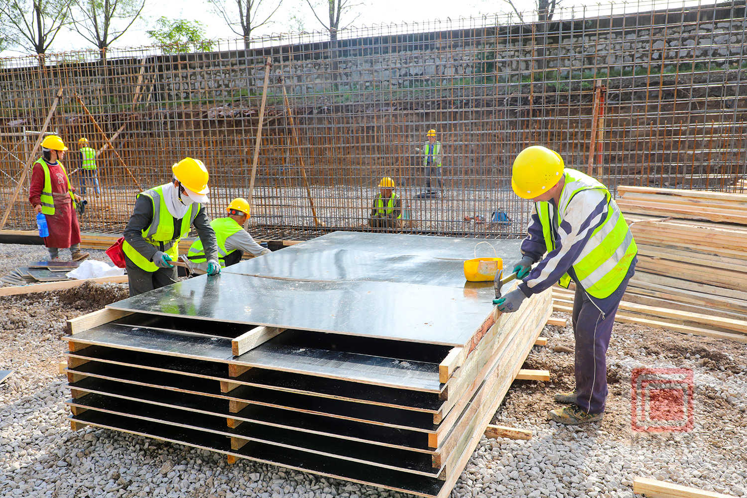 来到丹河南王庄段水质净化改造与提升工程施工现场,处处是如火如荼的建设场景。挖土机轰鸣作业,运输车往来穿梭,相互配合进行土地平整作业。工人们各司其职,或搬运材料,或绑扎钢筋,或支设模板,铆足干劲全力推进工程建设,用坚守为国庆献礼。