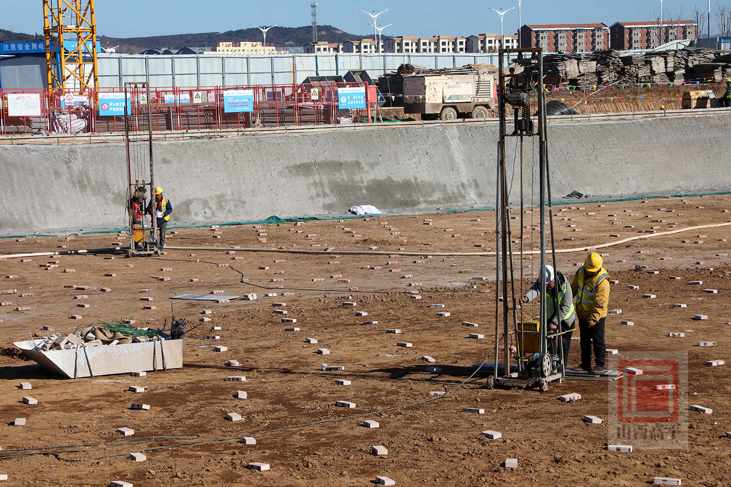 针对冬季低温对施工的不利影响,施工方提前制定冬季施工专项方案,对地基处理、混凝土浇筑等关键工序采取添加防冻剂、覆盖保温被等一系列保温措施,并储备充足的防雨布、电热毯、防寒服等防冻保暖物资,全力保障工程质量达标、建设进度有序推进。截至目前,基础土方开挖及喷浆支护完成80%,整个项目预计2027年9月底可全面完工。