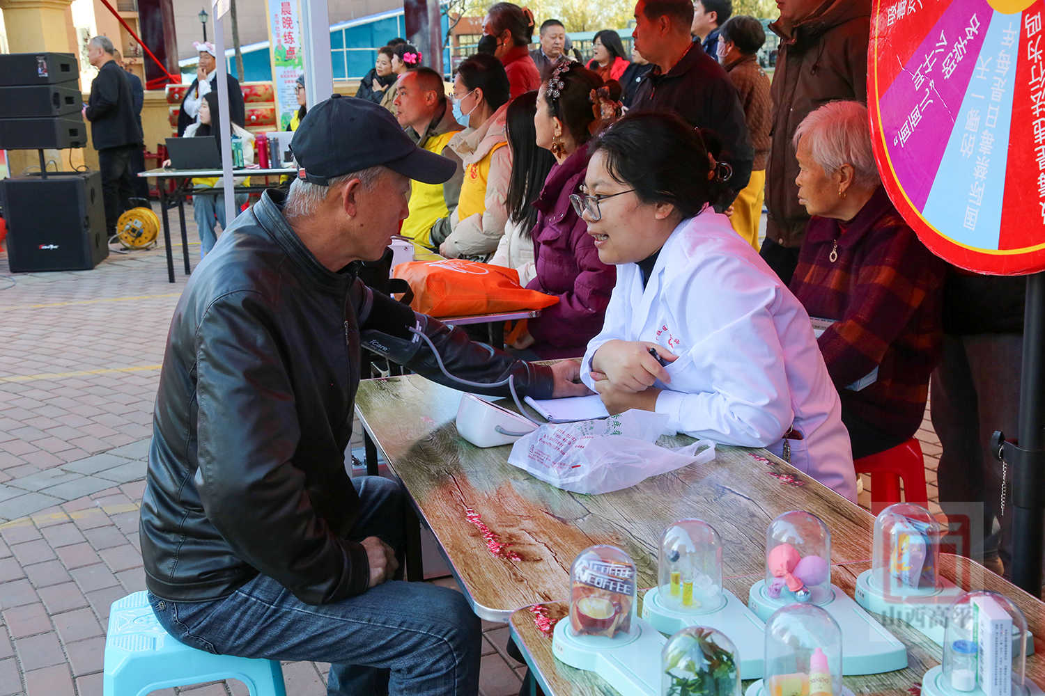 另一边,文明集市同步火热进行,活动紧扣群众生活需求,设置科普宣传、移风易俗宣传、健康义诊、农产品展销等特色摊位,为居民提供实实在在的便利。居民们穿梭于各摊位前,在互动体验中学习实用知识,在贴心服务中感受文明暖意,现场一派热闹。