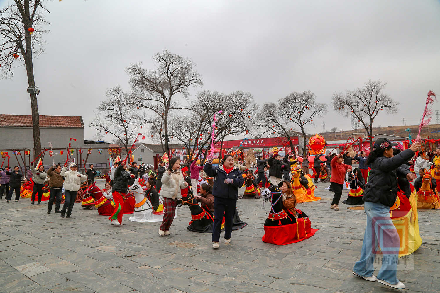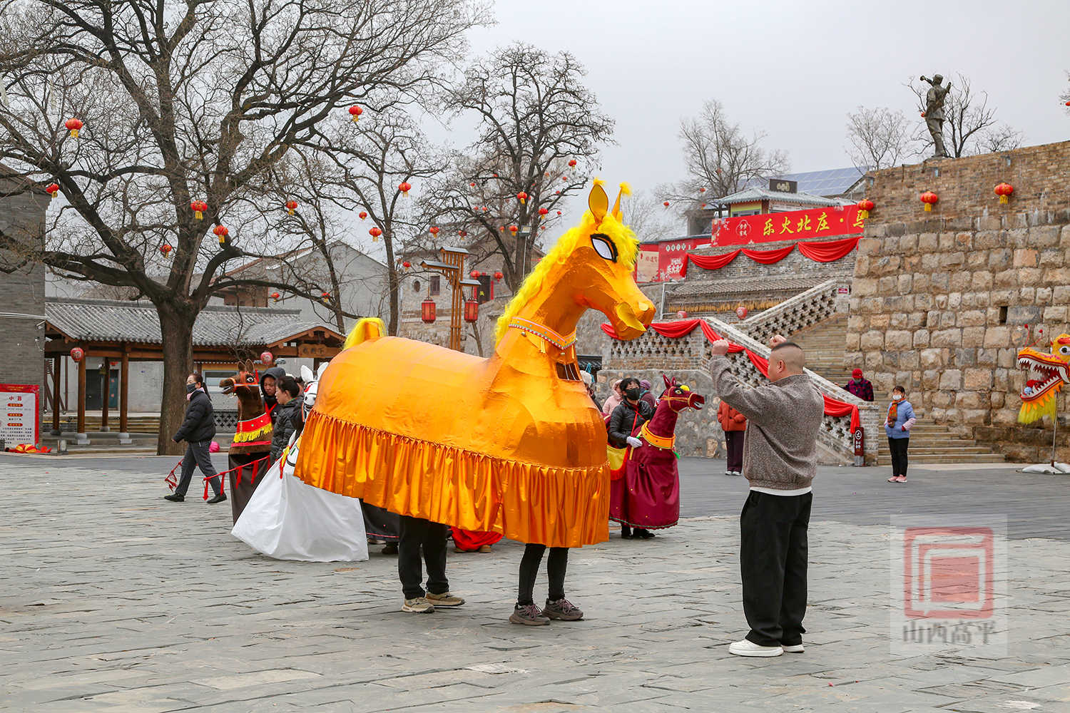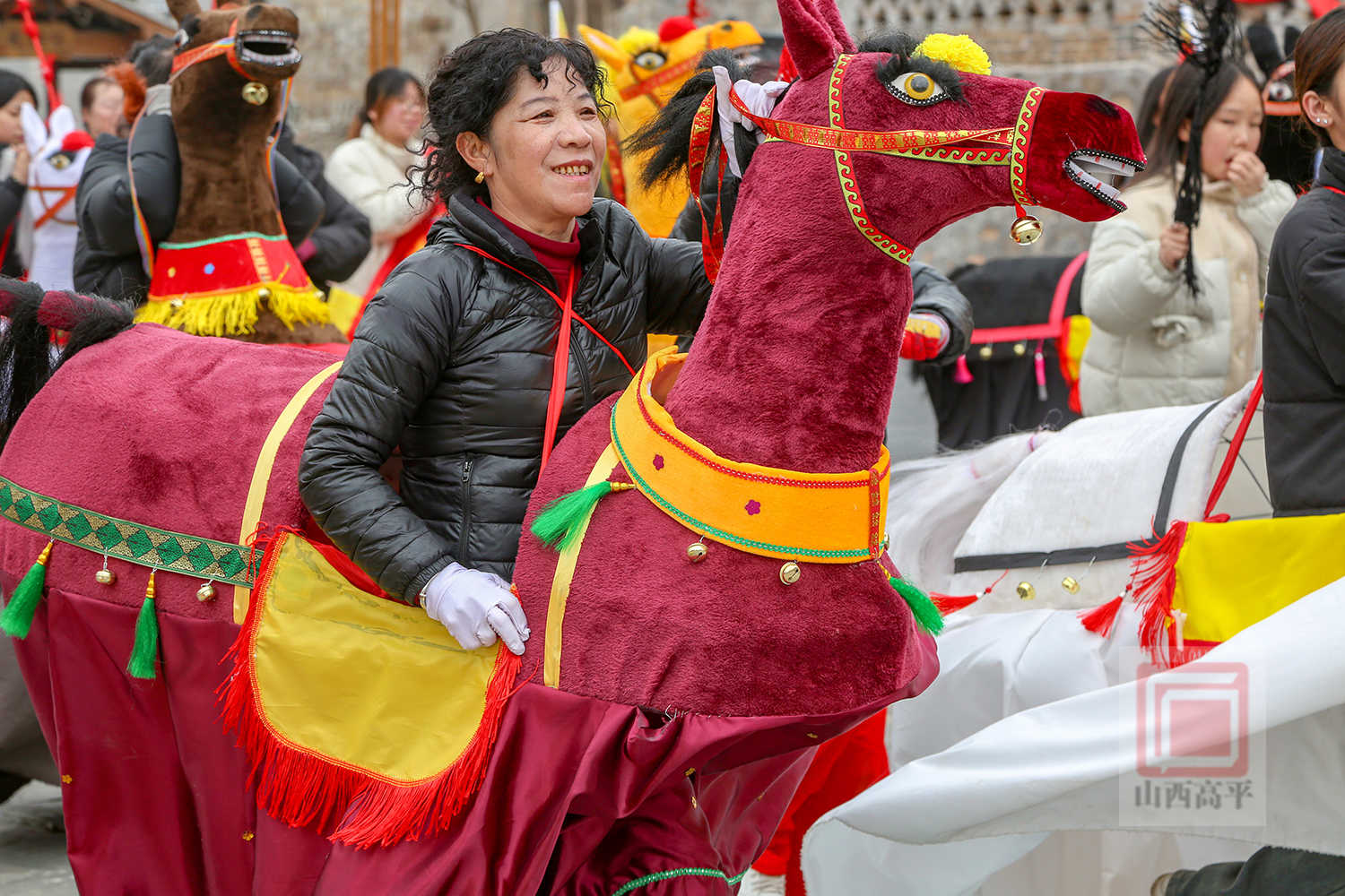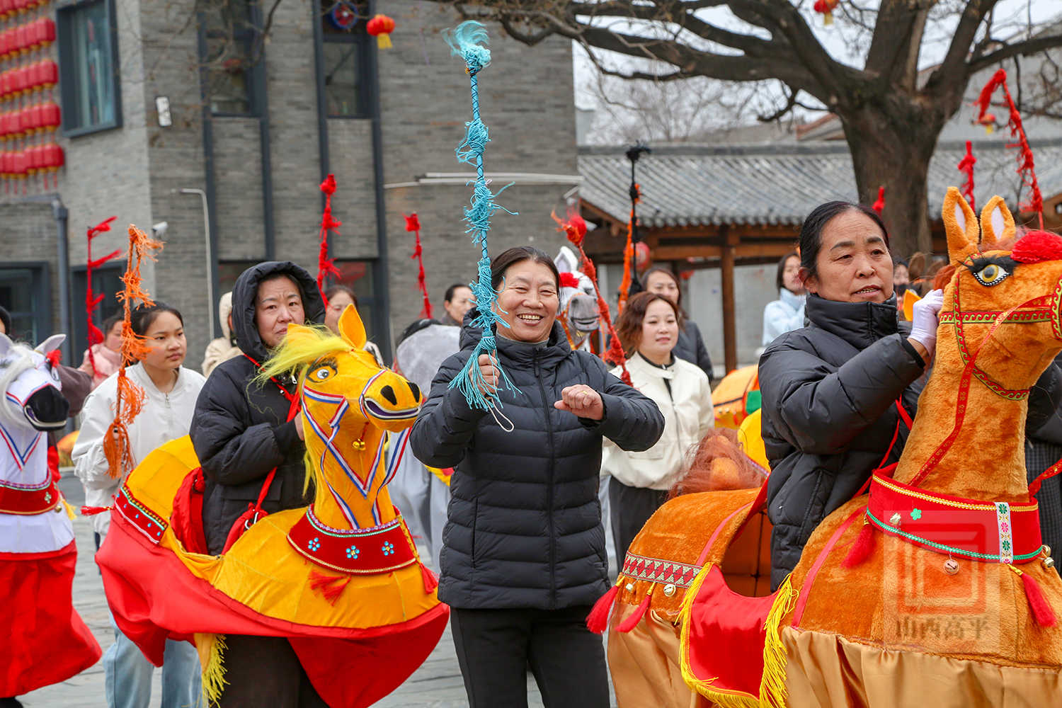 “拽着马鬃抖起来!”“步子颠起来,把马儿的欢腾劲演出来……”在北庄村社火广场,百余名村民身挎竹马,和着节拍进退穿插、变换阵型……大家时而疾驰奔腾,时而悠然漫步,将骏马驰骋的灵动姿态演绎得热闹欢腾。