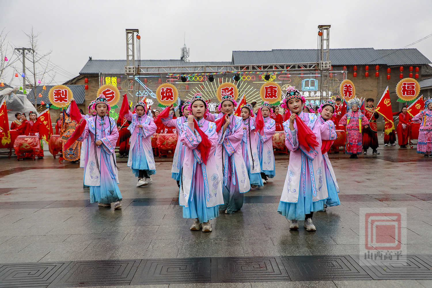 今年寺庄镇的民俗耍乐故事表演以“万马奔腾闹元宵 旗鼓同辉贺新岁”为主题,共分为“骏马启势 旗舞风华”“马踏梨园 曲韵闹春”“万马齐鸣 旗鼓同辉”等多个篇章,融合了战旗、梨园戏曲、鼓舞等多种元素,既彰显了马年奔腾向上的精气神,又蕴含着浓郁的地方特色与深厚的文化底蕴,为群众送上红火年味和浓浓祝福。(李金莎 邢宇琛)