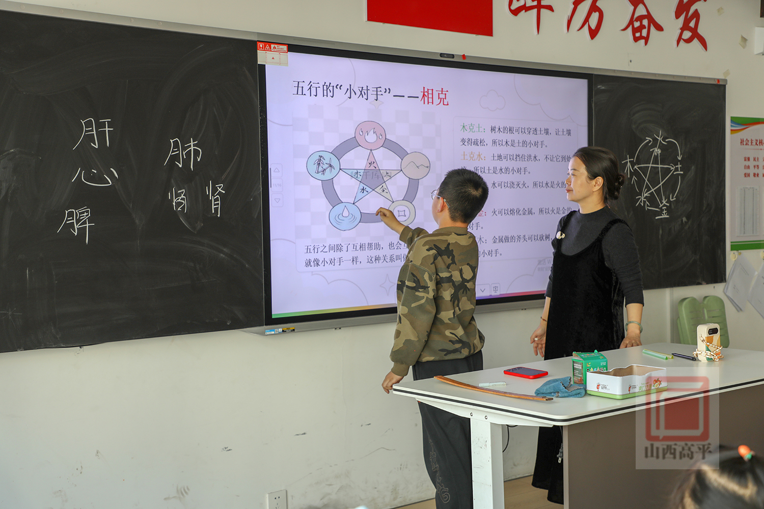 为巩固学习成果、加深记忆,课堂还设置了“五行趣味互动游戏”环节。孩子们分组协作、踊跃抢答,快速匹配五行对应的五脏卡片和相生相克卡片。大家在动手动脑、趣味互动中,进一步加深了对五行与人体健康关系的理解。