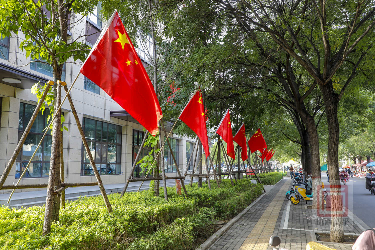 随着国庆临近,我市大街小巷悄然换上节日盛装,一面面五星红旗迎风招展,洋溢着喜庆的节日气氛。满城尽染“中国红”,凝聚着我们对祖国的热爱,表达着对祖国最美好的祝福。