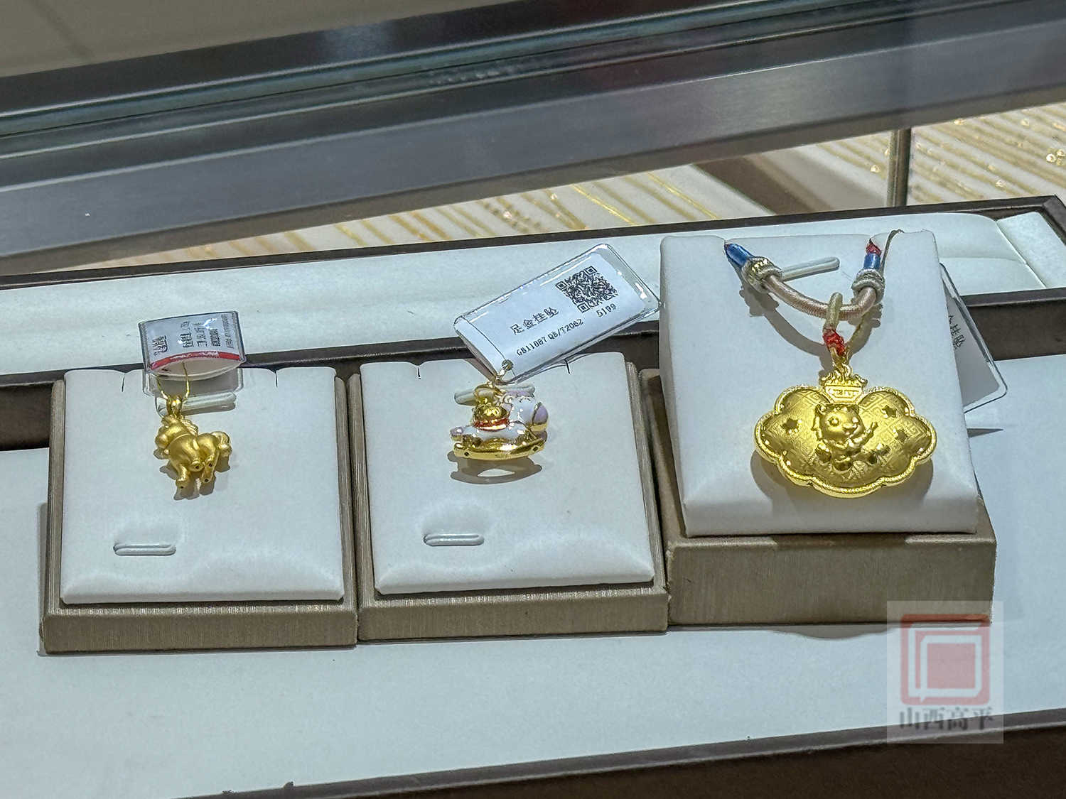 新春的“好彩头”不只新年挂件、手工艺品,“马元素”黄金饰品同样热销出圈。在市区某商场黄金饰品专柜,马年主题金饰整齐陈列,Q版萌趣小马吊坠、“马上有福”吉祥手链、灵动飞马挂件等饰品工艺精湛、寓意吉祥,吸引了不少市民前来选购。