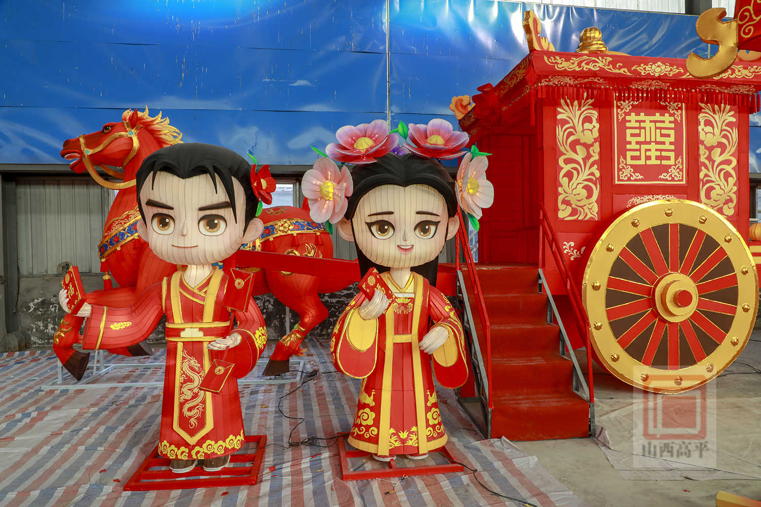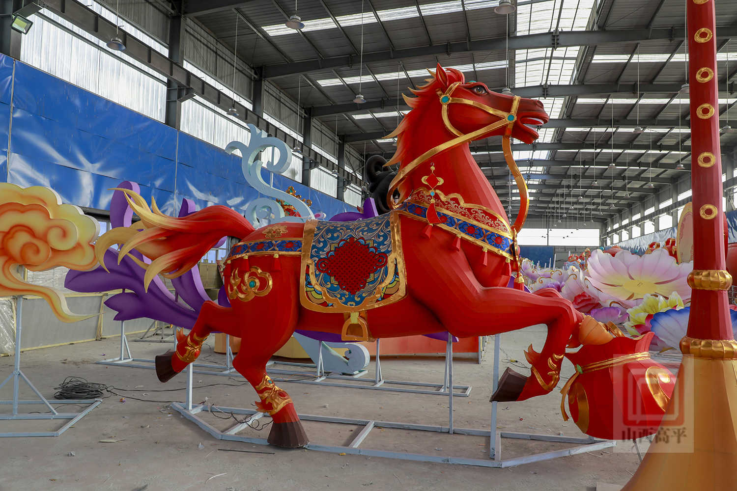 来到彩灯厂,浓浓年味扑面而来,一盏盏造型灵动、色彩艳丽的花灯扮靓车间。其中,当数马年主题的系列花灯,引人注目。只见大型灯组中,造型雅致的婚嫁女神与英俊神气的天马相映成趣;“马上有囍”灯组则展现了一对身着传统喜服的新人搭乘新婚马车奔赴幸福……非遗花灯融入马年元素、高平喜文化元素,喜庆而热烈,承载着人们对新春的美好期许。