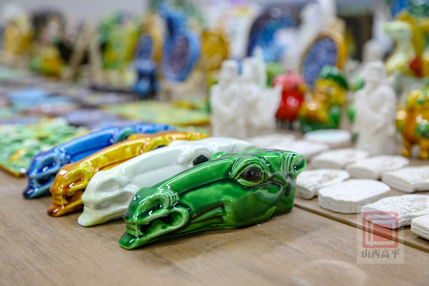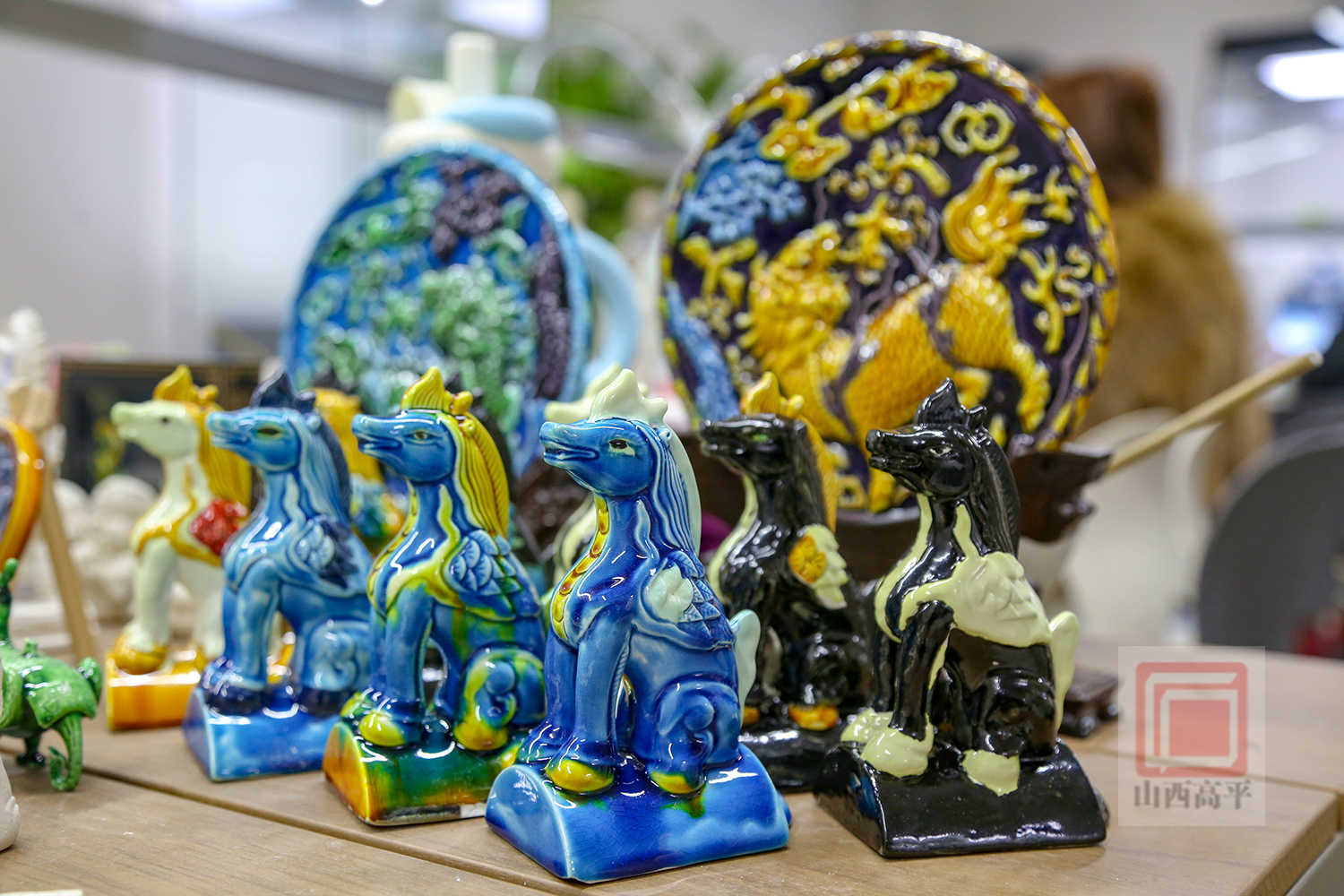 近年来,解兴明工作室与市文旅珐华田园文化创意有限公司展开深度合作,推动琉璃技艺从传统建筑构件向生活化文创产品转型。通过与中国国家博物馆、山西博物院合作,推出以馆藏文物为原型的文创产品,广受消费者青睐。同时,部分文创产品还亮相首都国际机场国际文创中心,向世界展示着高平传统琉璃工艺的魅力。