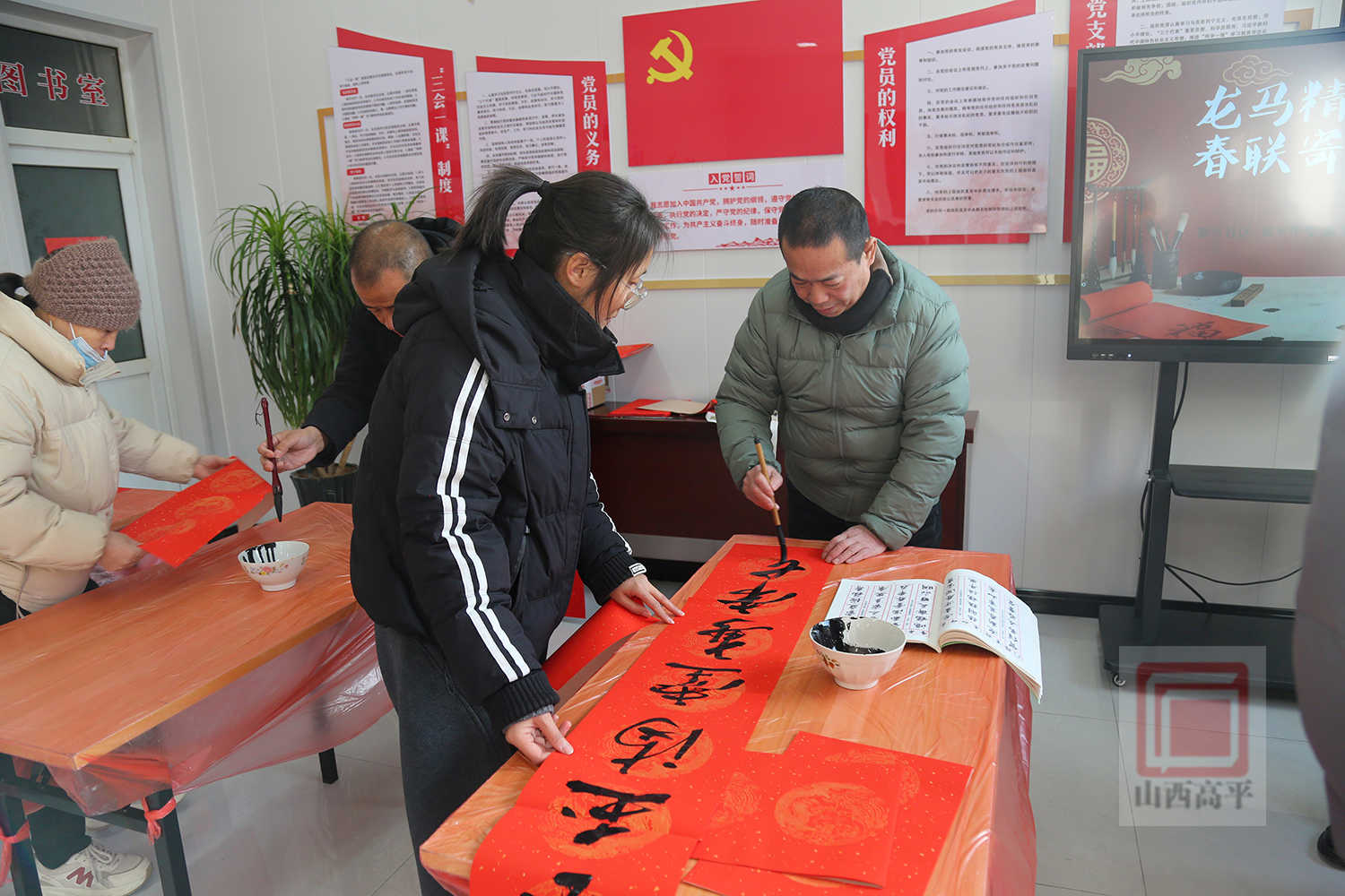 来到社区书画室,红纸逐一铺开,满是红火的新春气息。书法老师们凝神聚气、笔走龙蛇,将对新春的美好期许融入一撇一捺之中。“一元复始春为首,万象更新福在先”“马跃前程千里路,春回大地万家欢”……顷刻间,一副副寓意吉祥的春联跃然纸上,饱含着对新春的憧憬;一个个“福”字承载着浓浓年味与满满祝福。社区工作人员与志愿者帮忙晾晒、整理春联、福字,并有序引导居民挑选春联,现场一派热闹温馨的景象。