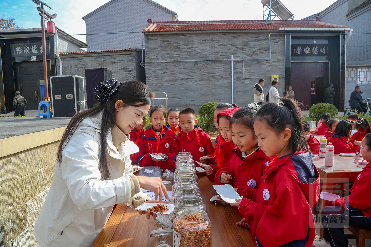 来到中庙村,学生们先后参观了八坊三十六院,了解了黑陶、珐华、潞绸、桑皮纸等非遗技艺的匠心华彩。当典雅庄重的八佾舞缓缓起舞,激昂高亢的上党八音会奏响旋律,现场瞬间热闹起来,学生们看得津津有味,掌声不断。不少学生还走上台,跟着演员敲锣打鼓,体验传统上党八音会的演奏技艺。