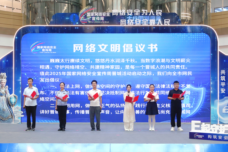 2025年国家网络安全宣传周晋城活动在我市启动 来源:高平市大数据中心 发布时间:2025-09-15 【字体:小 大】 如果内容不能正常显示,请更换浏览器进行重试 9月15日,2025年国家网络安全宣传周晋城活动暨高平市“E起守护 共筑平安”网络安全嘉年华主题活动正式启动。仪式上,公安民警、互联网企业代表、新媒体协会代表、网民代表、青少年代表、本土网红等发布网络文明倡议。 本页二维码 【打印正文】