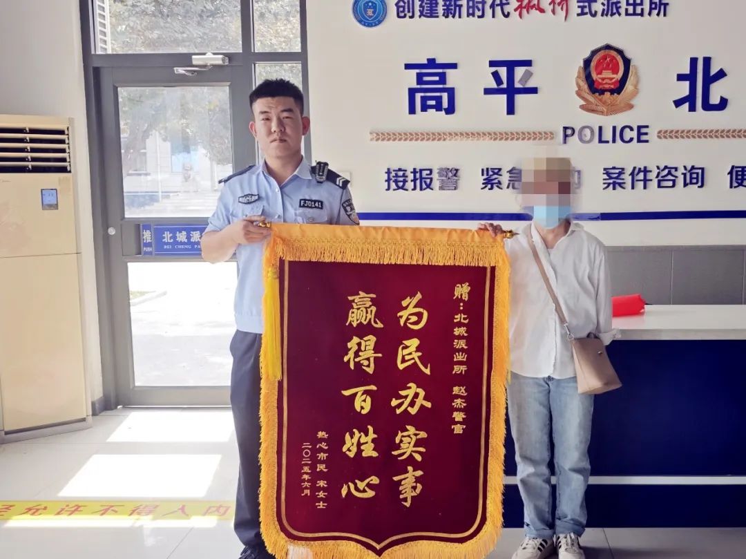 “困难的时候,是你们给予了很大的帮助,这面锦旗是一点心意,一定要收下!”6月8日,杨先生到北城派出所送上一面锦旗,称赞北城派出所民警“公平正义,为民办实事,人民好警察!”。