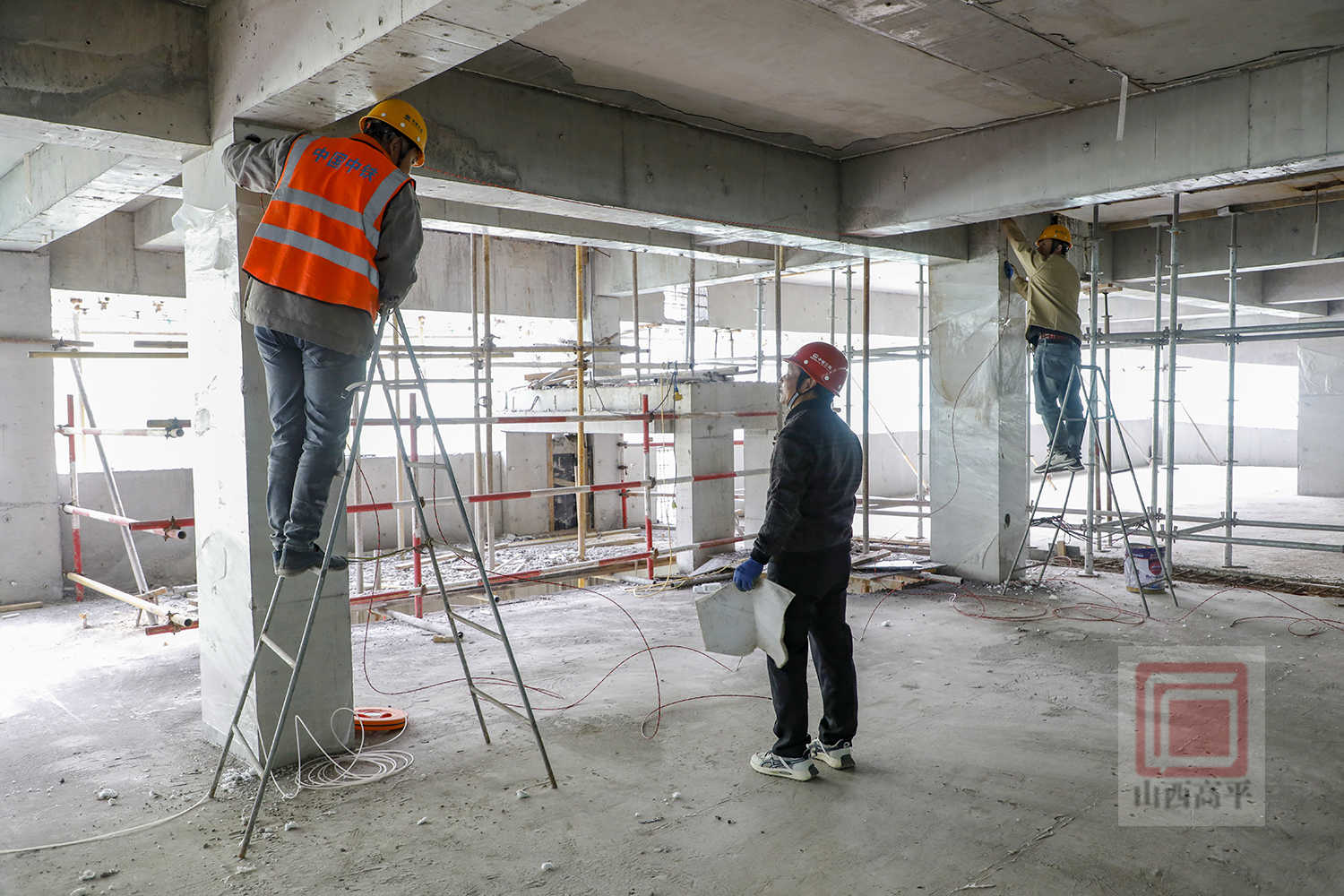 在泫氏街便民服务市场及停车楼项目现场,同样是一派忙碌的施工景象。王彪作为项目现场技术员,正忙碌地穿梭于各个作业点。从测量数据到技术指导,每一个环节他都认真负责,确保施工符合技术标准和设计要求。“节日期间,能与大家一同坚守在岗位,加快推进项目建设,为城市发展贡献一份力量,感觉忙有所值。”王彪说。