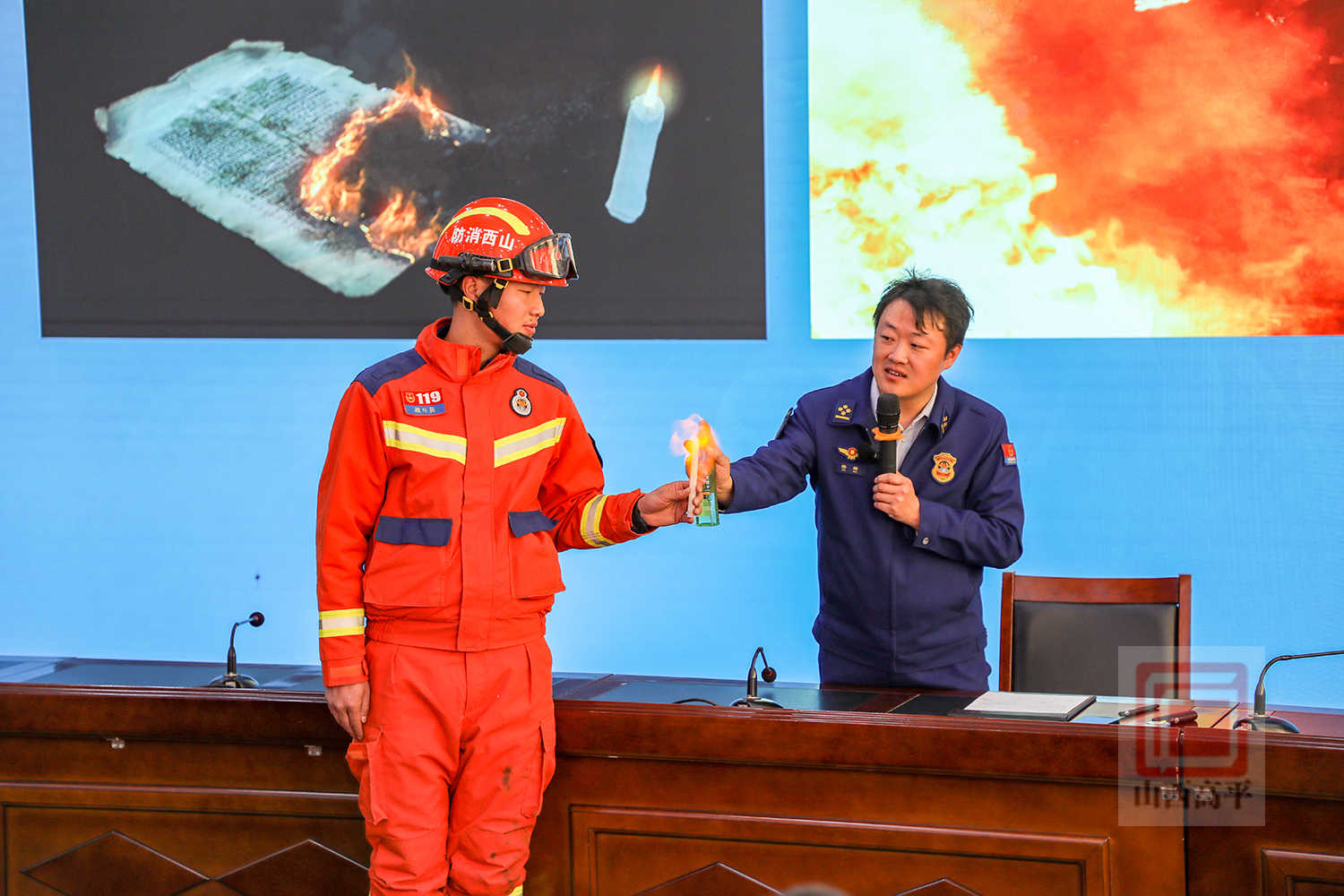在报告厅,消防员通过播放视频、互动交流、有奖问答等形式,用简洁易懂的语言就火灾的危害性、学校家庭防火注意事项、如何正确拨打“119”报警电话、如何在火场中逃生自救,以及逃生过程中的注意事项等消防安全常识进行了讲解,并现场演示了灭火器的使用方法。活动现场,学生们认真聆听消防安全知识、积极参与问题抢答,在轻松有趣的互动中进一步增强了消防安全意识。