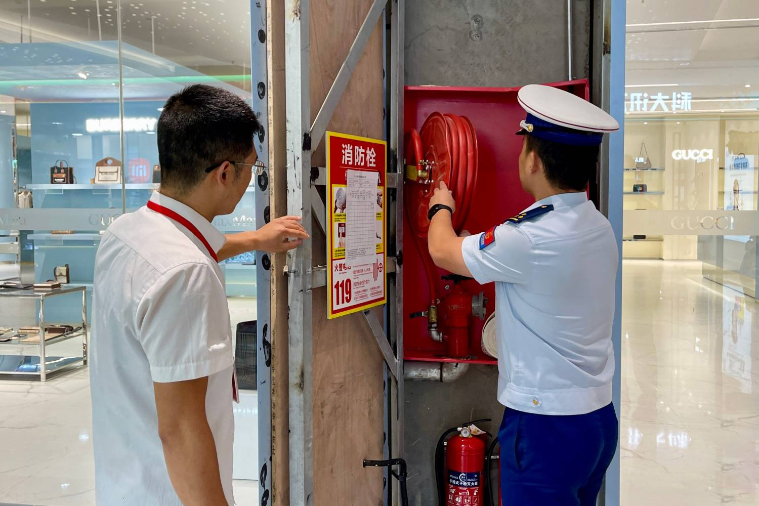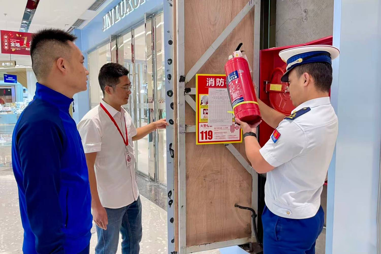 “咱这个微型消防站现在配备的器材都比较全吧?咱们按照这个微型消防站的配备标准配备了吧?像咱们需要安装电池的或者充电的设备都要定期检查……”在我市某大型商业综合体,执法人员正在对消防设施进行检查,包括火灾自动报警系统、消火栓系统等是否正常运行,疏散指示标志、应急照明是否完好有效,防火卷帘是否能正常启闭。为应对国庆、中秋“两节”期间消费高峰,商场也配备了充足的消防设施器材,并积极开展自查自纠,全面消除问题隐患。