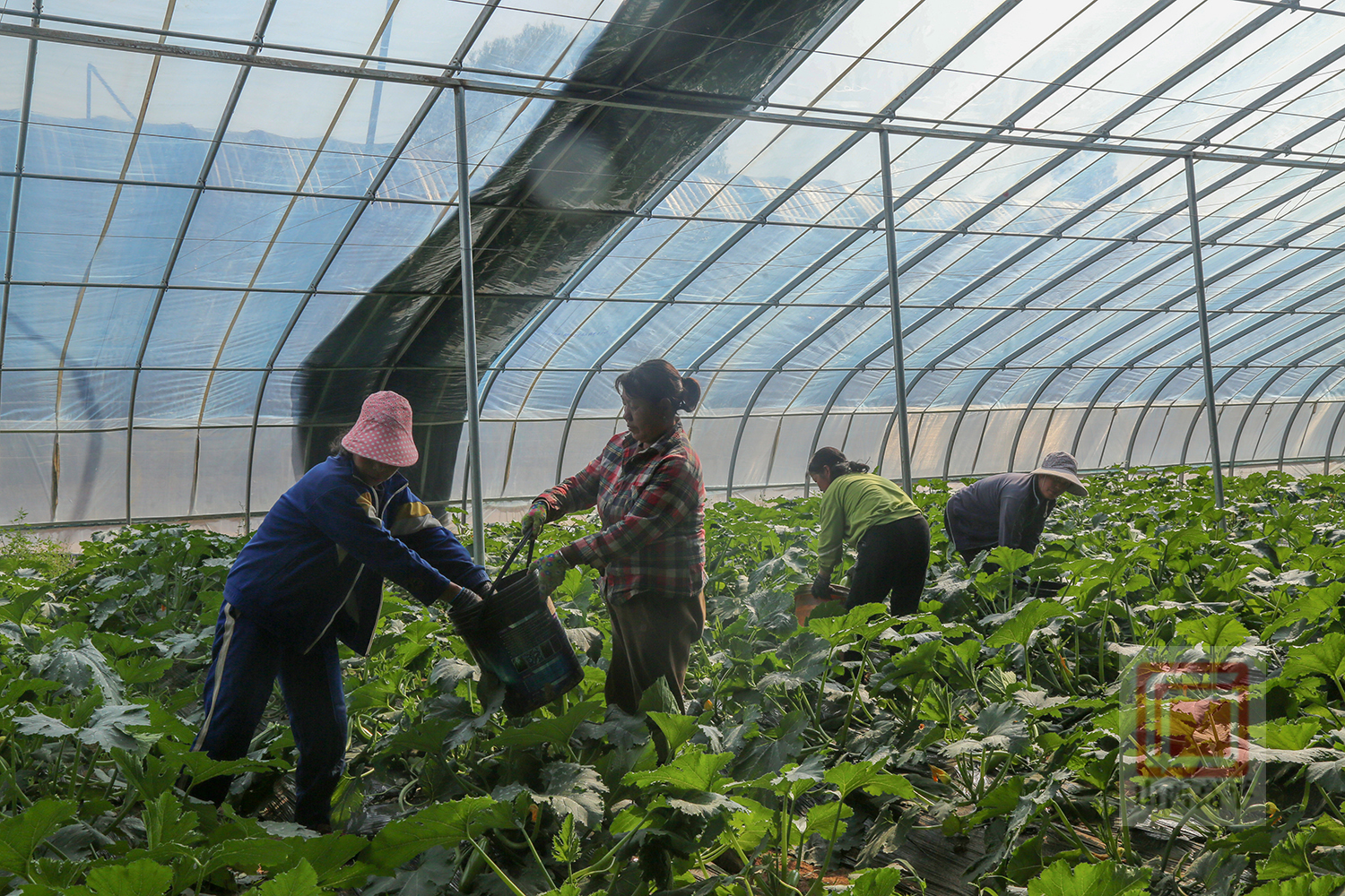 建宁乡苏庄村村民苏书梅一边采收西葫芦,一边高兴地说:“郭庄村建成蔬菜大棚以后,我就在这里干活,一天能挣50块钱,既顾了家,也增加了点收入。”