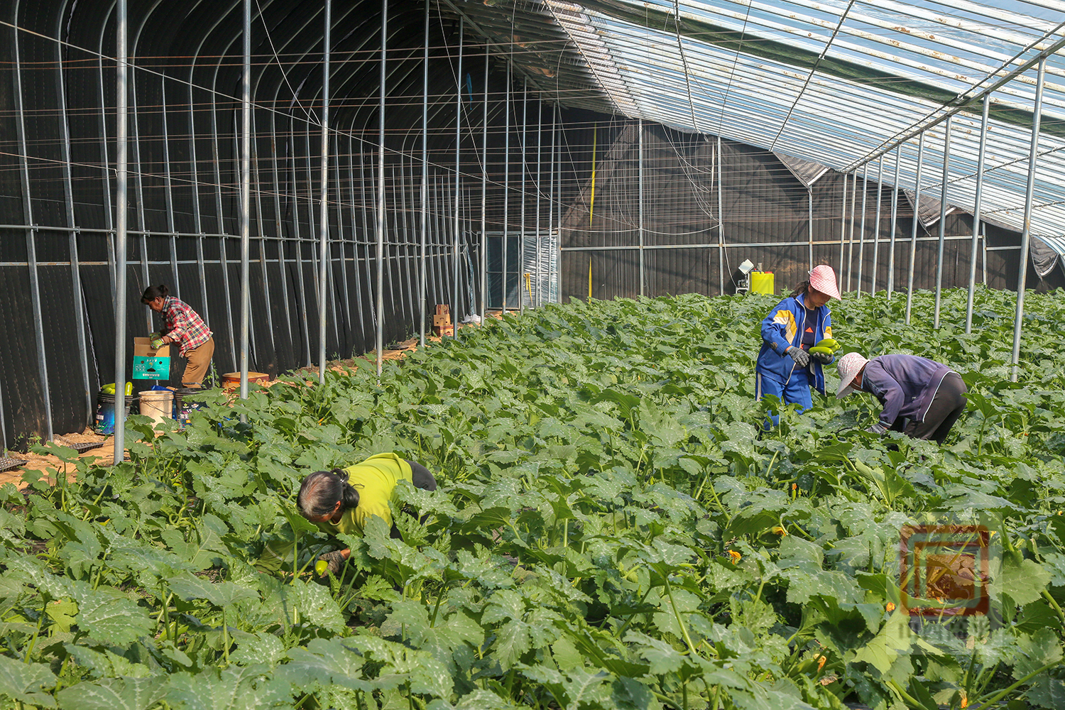 郭庄村是我市发展壮大村级集体经济“十佳村”。去年以来,该村坚持党建引领,采用“党支部+强村公司+农户”的经营模式,流转土地200余亩,投资2000余万元,打造了百亩大棚蔬菜园区,大力发展果蔬特色产业。目前,该村建有10栋日光蔬菜温室大棚,其中4栋西葫芦迎来了采收期,让周边村民们尝到了在家门口就业增收的甜头。