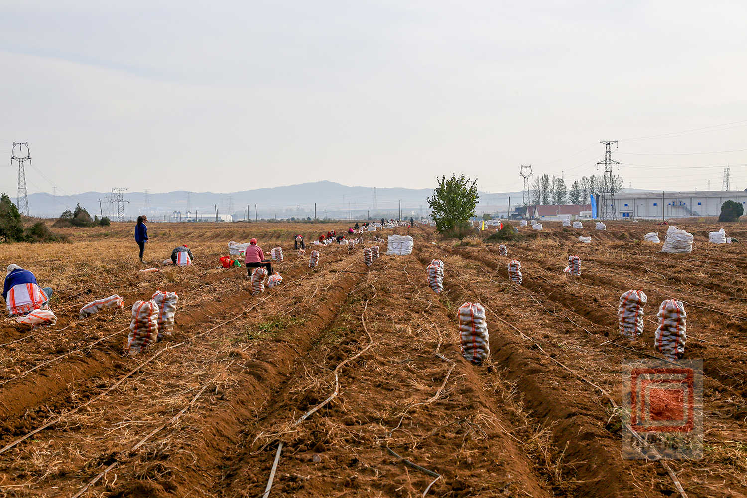 宰李村耕地资源丰富,土质沙软,有利于土豆块茎膨大,非常适宜土豆种植。近年来,山西吉利顺农业科技有限公司积极盘活土地资源,先后流转宰李村土地500余亩,规模化种植土豆、辣椒、白菜等农产品。今年,公司进一步延伸产业链,在台湾产业园建起了净菜加工厂,构建起集蔬菜种植、净菜加工、研发销售于一体的产业链,为我市农产品加工产业注入新动能。目前,500亩土豆已全部成熟,采收期可持续至11月中旬,预计每亩产量可达6000斤,总产量可达1000多吨。