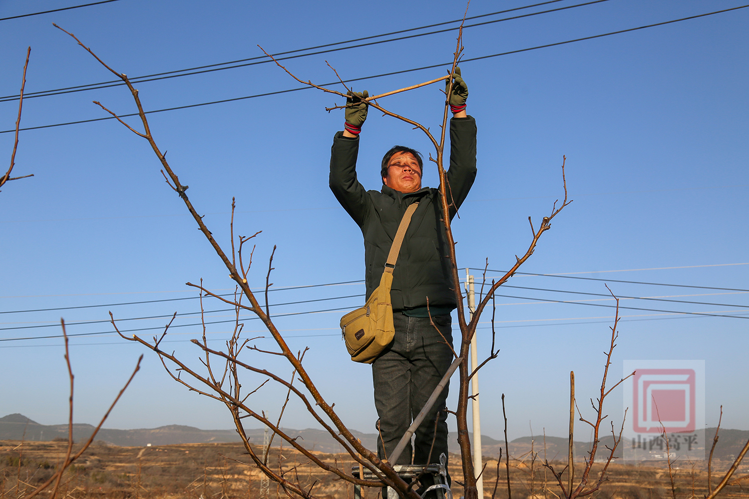 技术员赵晋中是种树的行家里手,“剪枝主要是剪掉过密枝、重叠枝、交叉枝和病虫枝,从而改善梨树的通风透光条件;刷白能起到杀菌、杀虫作用,增强树木防寒防虫能力,保障梨树安全越冬。”赵晋中边说边示范,向村民传授梨树管护技巧。