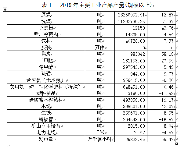 全年全社会原煤产量2859.98万吨,增长14.12%。其中,规模以上工业企业原煤产量2825.69万吨,增长12.87%;洗煤1129.87万吨,增长51.37%;氮肥(折含N100%)64.8万吨,增长0.5%;水泥40.0万吨,增长48.1%;生铁29.0万吨,下降8.6%;焦炭 98.30万吨,增长58.18%。