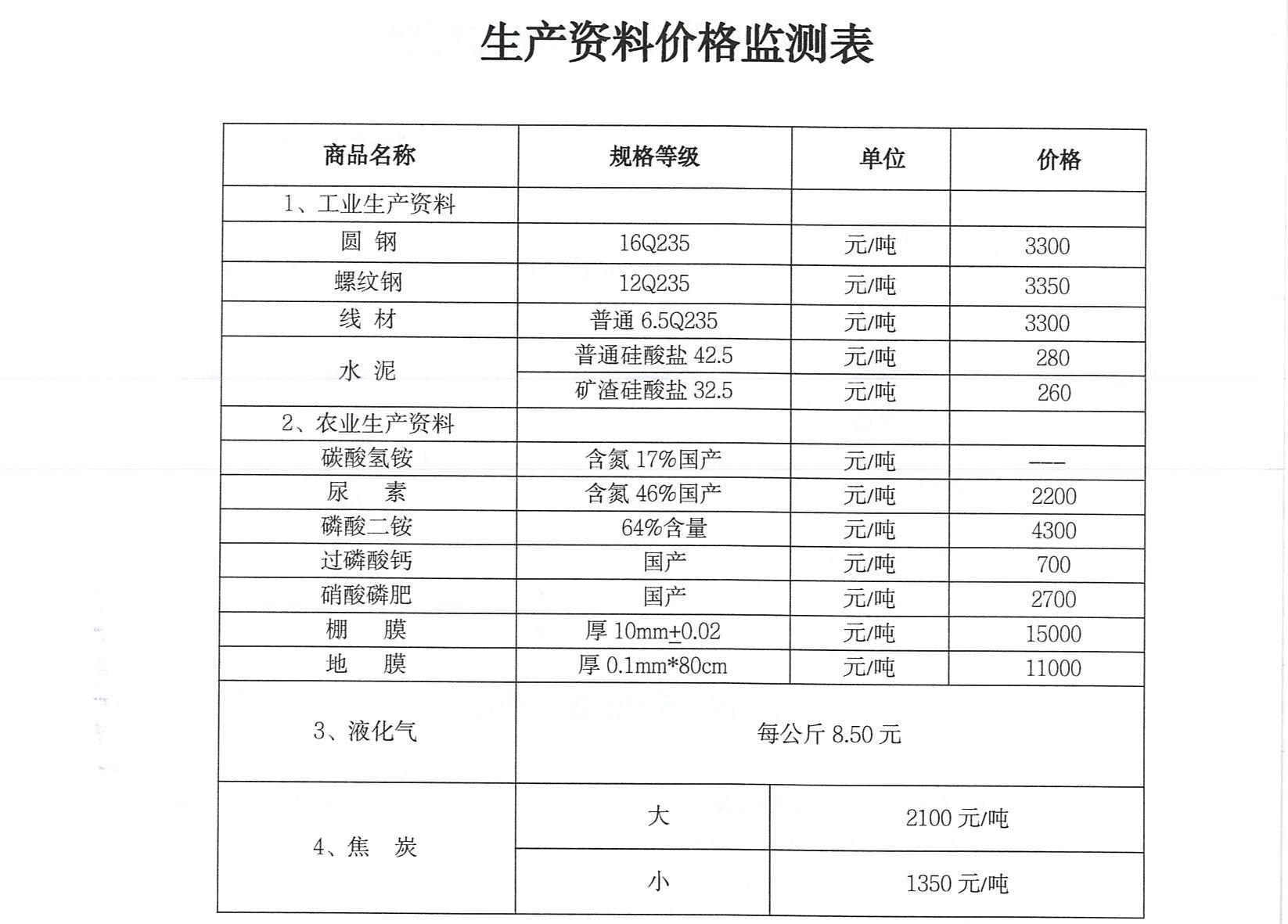 价格旬监测(2026.2.5) 来源: 发布时间:2026-02-09 【字体:小 大】 如果内容不能正常显示,请更换浏览器进行重试 附件:成品粮价格监测表.doc 附件:粮油副食品价格监测表.doc 附件:日用工业消费品零售价格监测表.doc 附件:生产资料价格监测表.doc 附件:原粮收购销售价格监测表.doc 本页二维码 【打印正文】