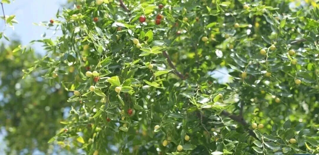 虽然酸枣树的主干已经中空、呈现出沧桑的枯褐色,但抬头望去,多条新生的枝干从底部长出,绿意盎然,充满了生命的活力,树上还结满密密麻麻、青红相间的酸枣果实,颗颗饱满圆润。这一枯木逢春的奇景,吸引了大量的游客专程前来一睹风采。
