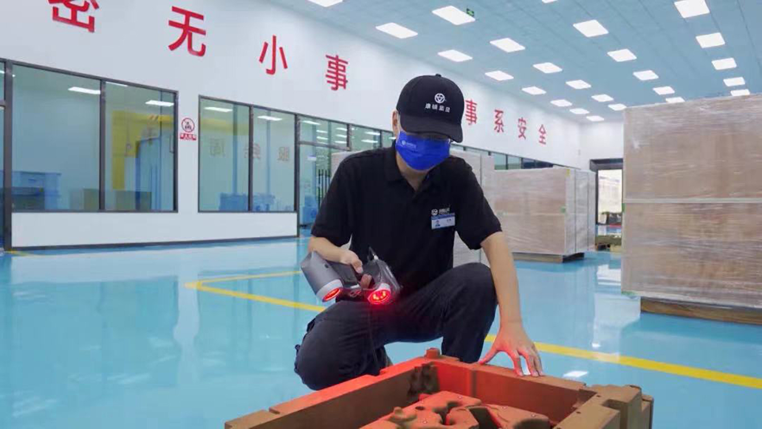 康硕(山西)智能制造有限公司新上马的轻合金快速成型中心二期项目。目前这条生产线已经正式投产,实现了关键零部件从设计、3D打印模具、精密铸造、数控加工到全方位检测的全流程生产。