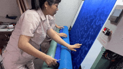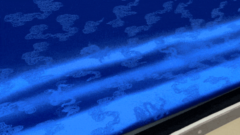 不同于一般染色的一次成型,潞绸采用分层染色工艺,通过不同颜色、不同染色次数,让颜色呈现浓淡变化。日常潞绸使用靛蓝居多,但录取通知书采用更清澈的“复旦蓝”,是工匠们从未尝试调配过的颜色。他们在实验室中调配了三种颜色,每种至少调了三遍,经过9次筛选才呈现出现在的效果。