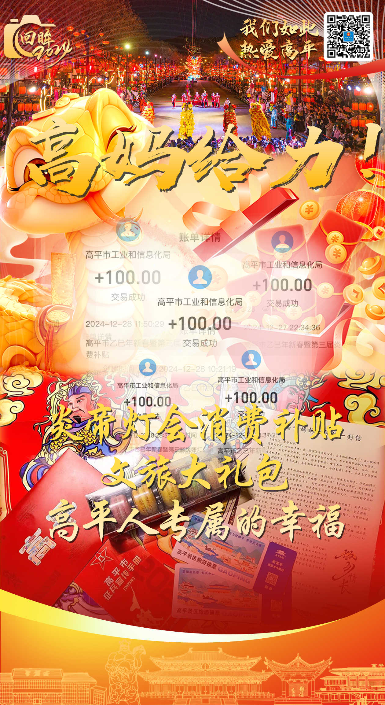 天高地平,高平宠您。岁末年初,市委、市政府向全体市民发放乙巳年新春暨第三届炎帝灯会消费补贴,每人100元,高平文旅向在外学子发放文旅大礼包,着实让生活、工作在高平的人,以及在外的高平游子、学子幸福感满满。