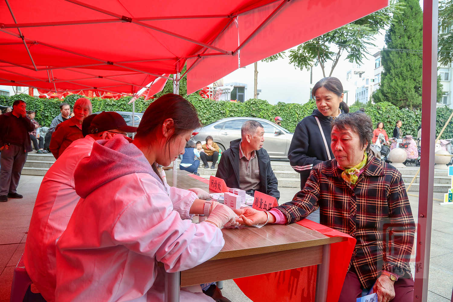 便民集市区域,健康义诊、艾灸体验、流动书屋、急救培训、非遗文创等10余个特色摊位依次排开,吸引不少市民前来“赶集”。大家穿梭其间,或在中医摊位前体验艾灸调理,或跟着志愿者学习心肺复苏技能,或在非遗展台前感受传统手艺的魅力。其中,市市场监督管理局的摊位格外受欢迎,执法人员现场为市民称量手机、粘贴重量标识,让手机变身“便携砝码”,用直观方式守护消费公平,让诚信理念融入生活细节。