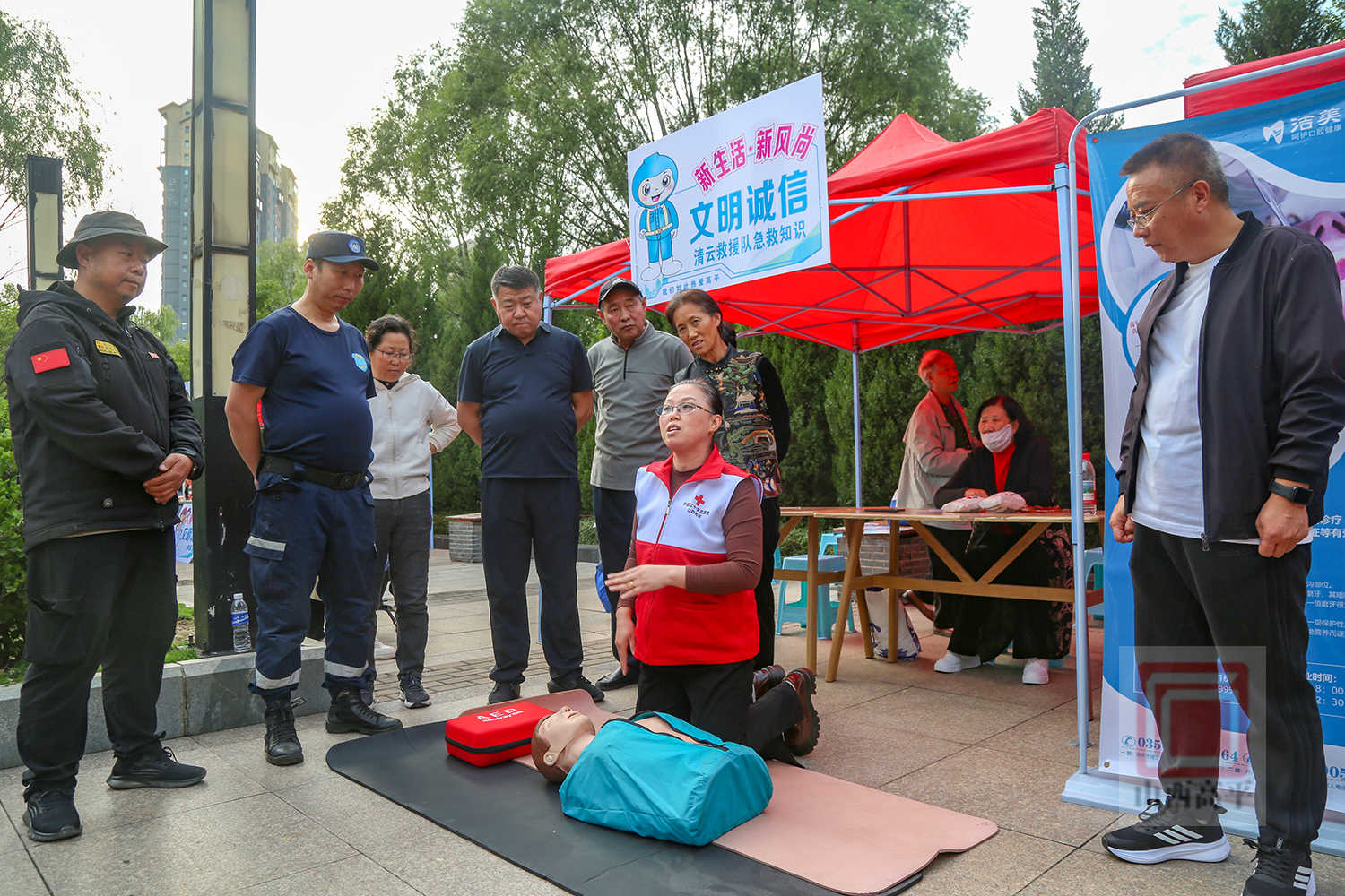 急救摊位志愿者张燕说:“作为红十字会志愿者,能把急救知识带给更多人,我感觉非常荣幸。希望通过培训,能让越来越多的人掌握急救技能,为自己和他人的生命多添一份保障。”