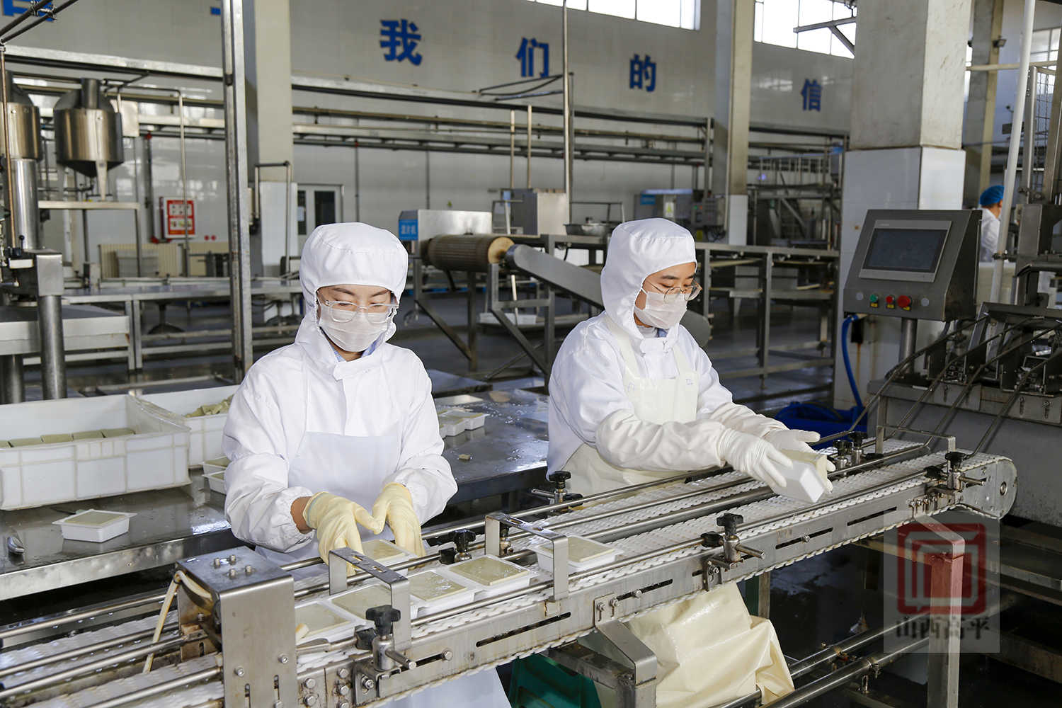 走进豆制品生产车间,醇厚的豆香伴着蒸气扑面而来。新投用的自动化生产线正高速运转,各工序无缝衔接,开足马力赶订单。经过泡豆、磨浆、煮浆、点浆、压制等工序后,一块块鲜嫩的黑豆花在生产线上陆续成型,通过无菌包装后将发往市场。