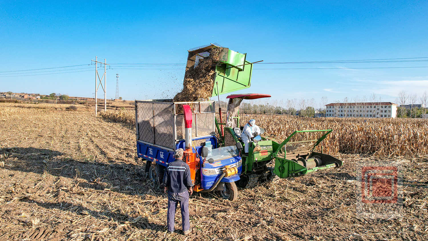 农机手常晋彪说:“我们合作社免费为村民处理秸秆,并对土地进行旋耕。我们将粉碎的玉米秸秆进行高温发酵灭菌,做成了青储饲料。”