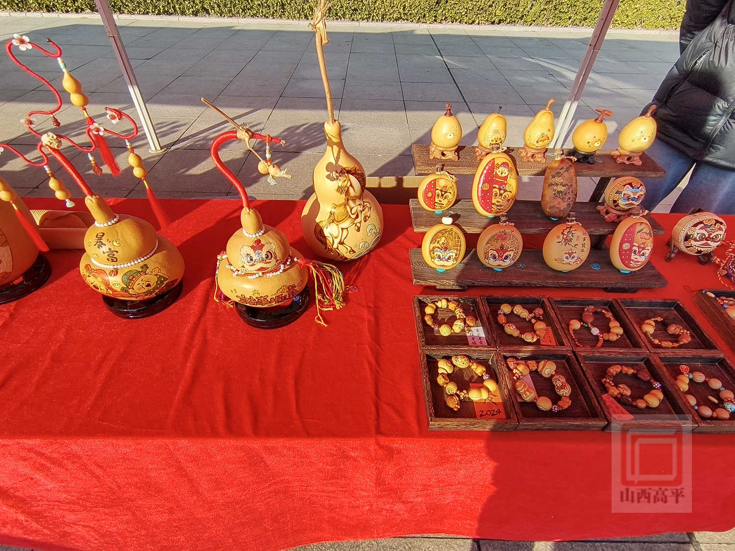 现场的文明摊位设置了非遗作品和农特产品两大展区,集中展示了剪纸、刺绣、面塑、彩灯等各学校学生的非遗作品,汇集了高平烧豆腐、十大碗、里圪抓、卤猪蹄、猪皮冻等本土美食。同时,高平珐华、黑陶、桑皮纸等非遗传承人也来到现场,展销非遗作品及文创衍生品,让市民近距离感受传统技艺的匠心巧思。
