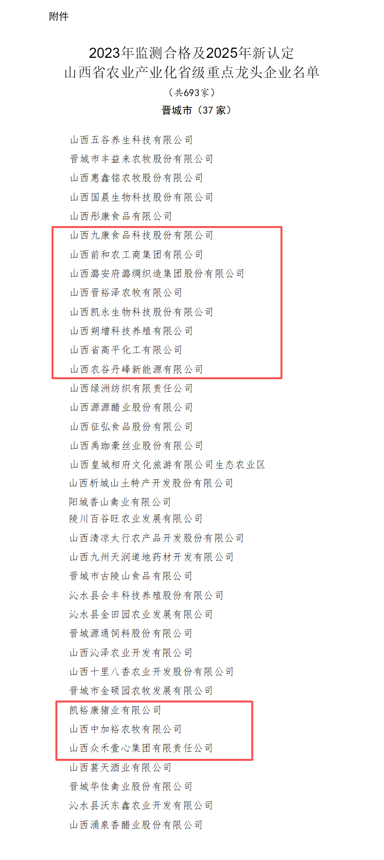山西省农业产业化省级重点龙头企业名单 我市11家企业上榜 来源:山西省农业农村厅 发布时间:2025-12-30 【字体:小 大】 如果内容不能正常显示,请更换浏览器进行重试 近日山西省农业农村厅公布了2023年监测合格及2025年新认定山西省农业产业化省级重点龙头企业名单共693家其中我市11家企业上榜 本页二维码 【打印正文】