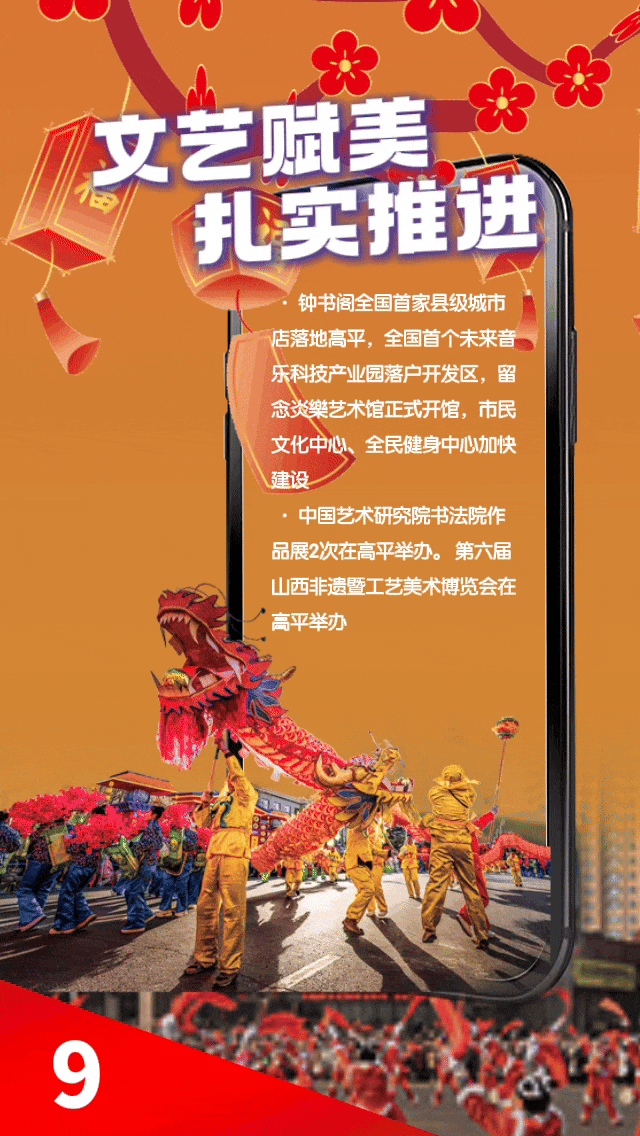 这一年,大家精神生活更丰富。全国首家县级钟书阁、首个未来音乐科技产业园都落户高平,留念炎樂音乐数字艺术馆也开馆了,无需远行就能享受高品质文艺盛宴。