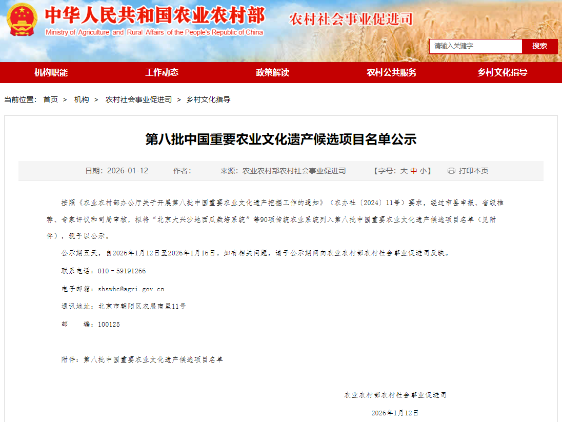 我市1项入选!第八批中国重要农业文化遗产候选项目名单公示