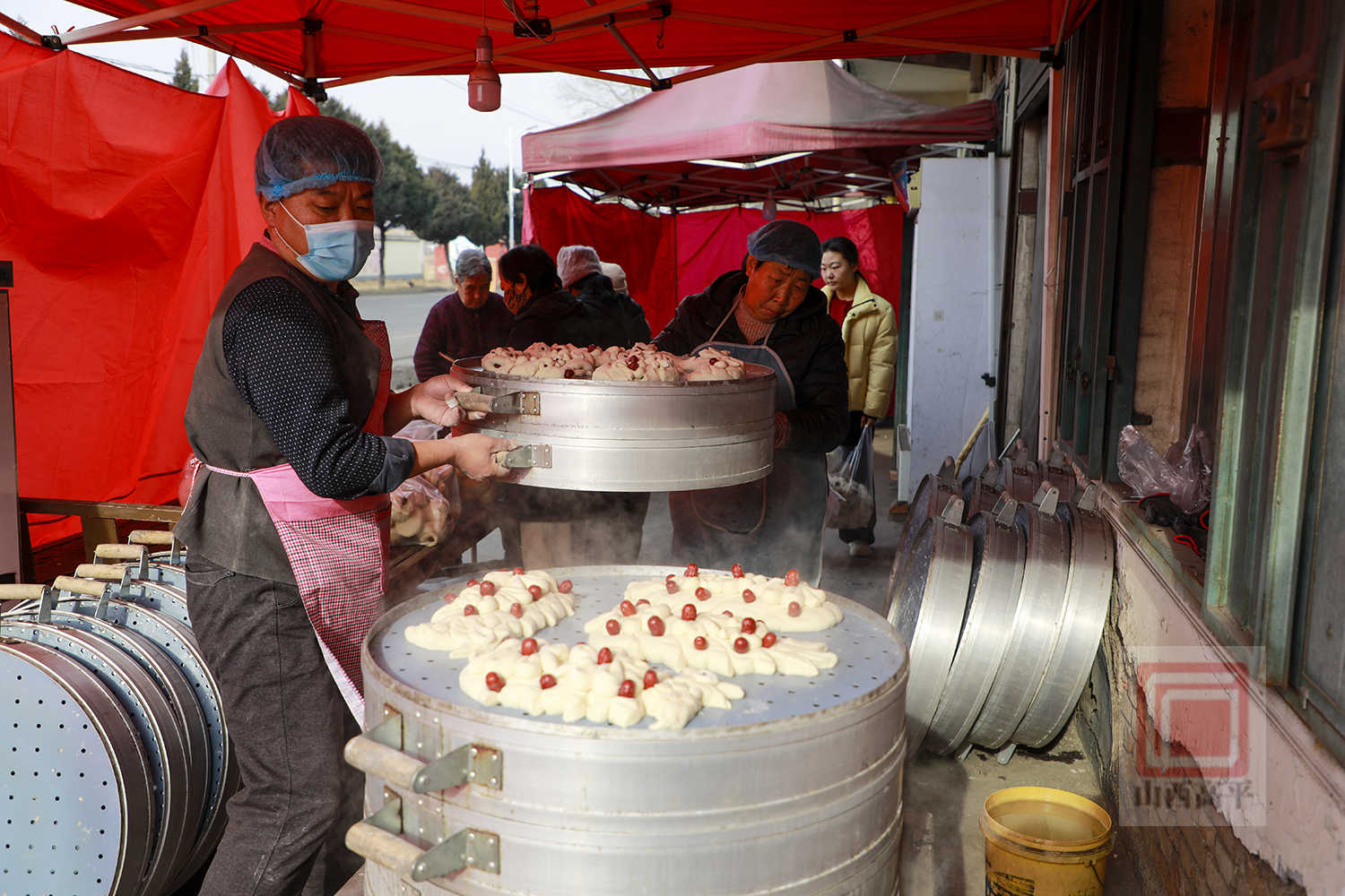来到南王庄村的花馍手工作坊,热气蒸腾中,枣香、面香交织出幸福年味。张会仙和村民们娴熟地忙碌着,和面、揉团、搓条、捏形、点缀、蒸制……不一会儿工夫,一笼笼枣山新鲜出炉。