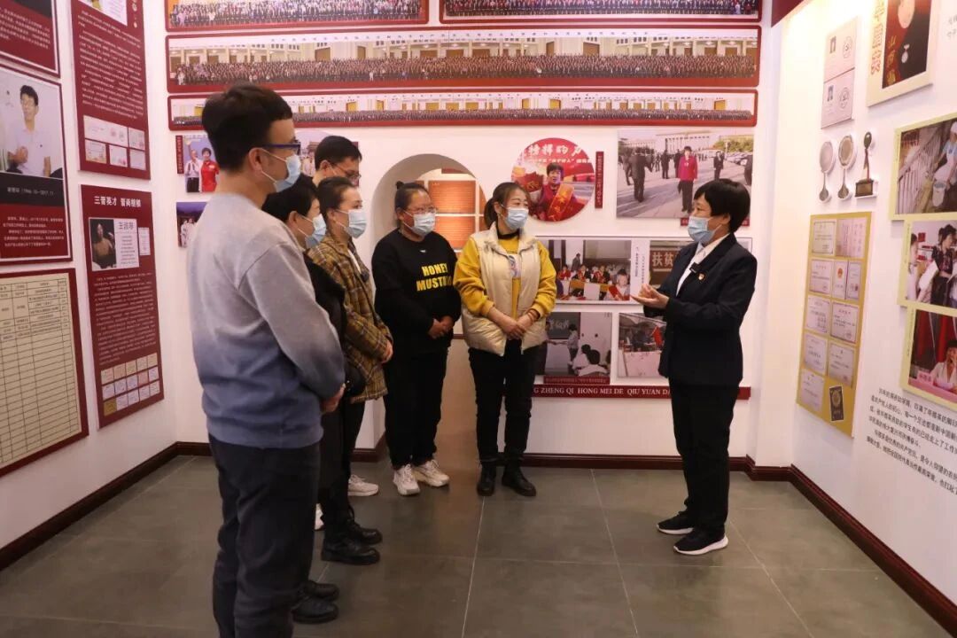 毕腊英在寺庄镇伯方村的廉政教育基地与党员群众传达党的二十大精神