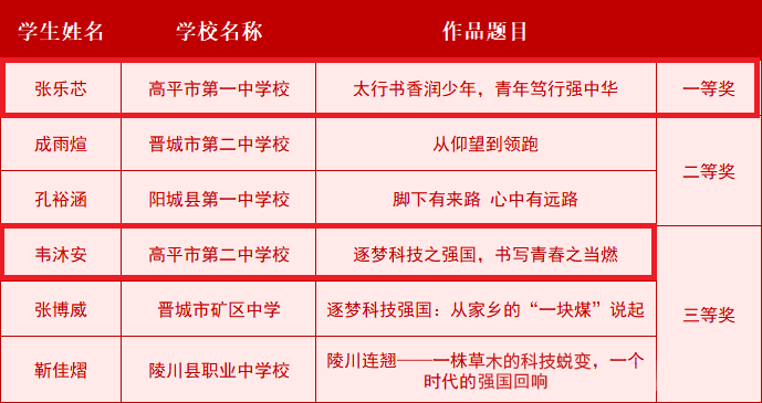 优秀!我市多名学子在晋城市青少年爱国主义读书教育演讲比赛中斩获佳绩
