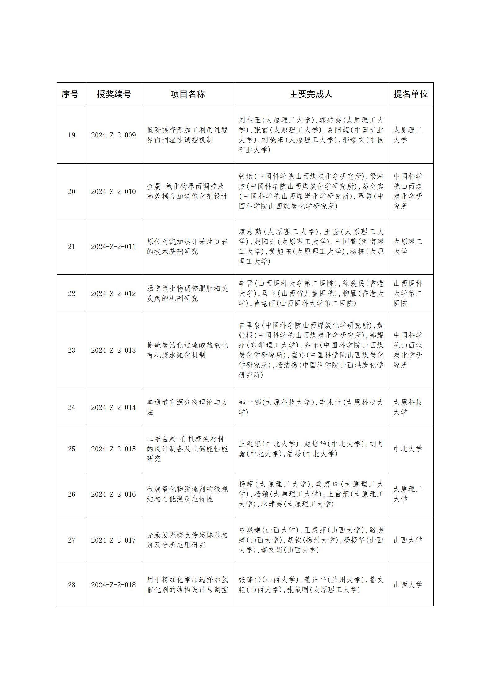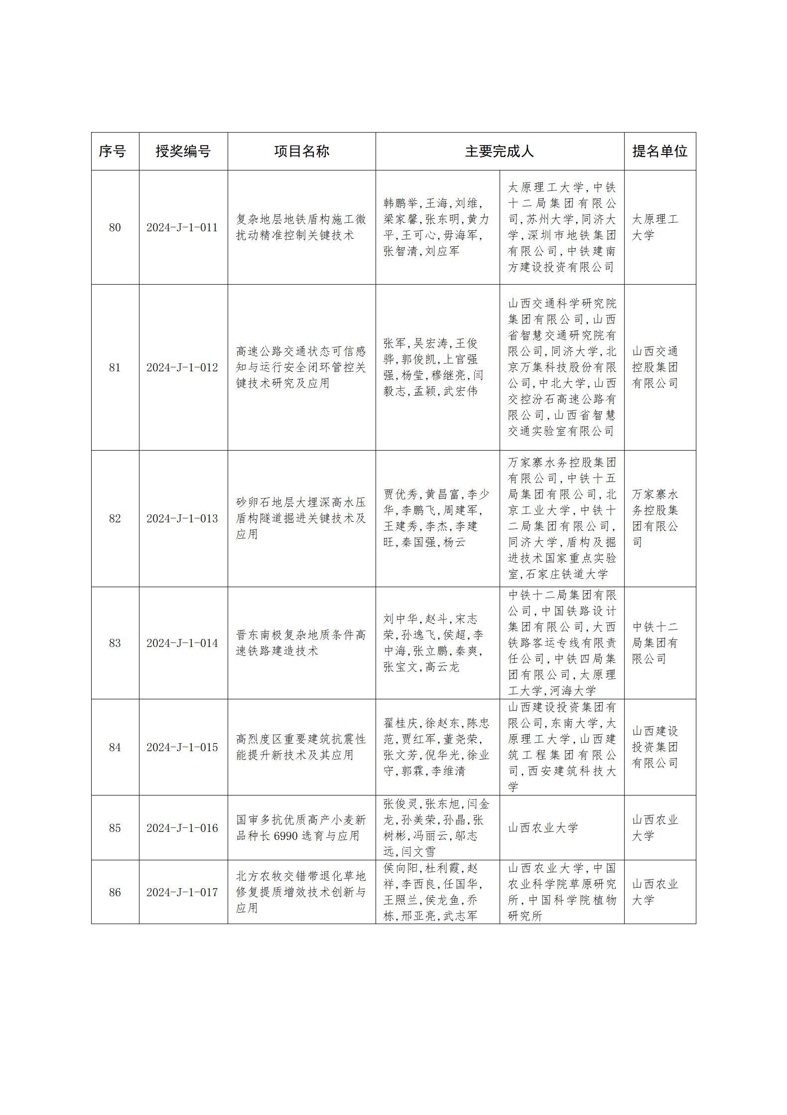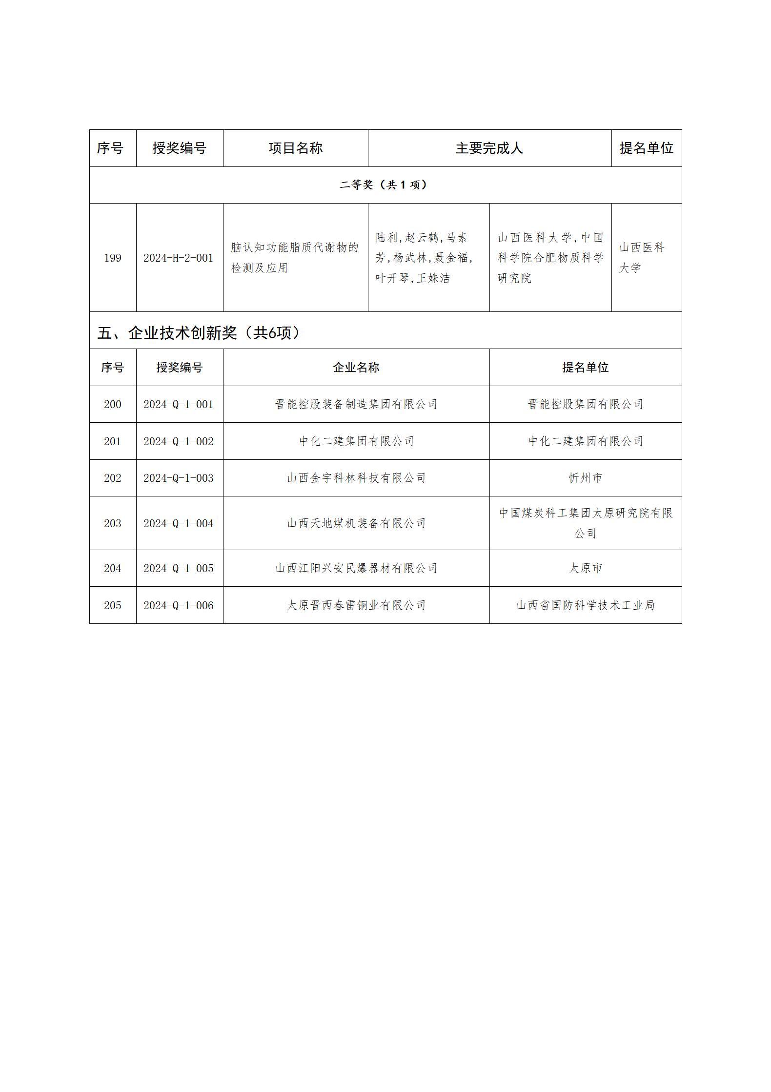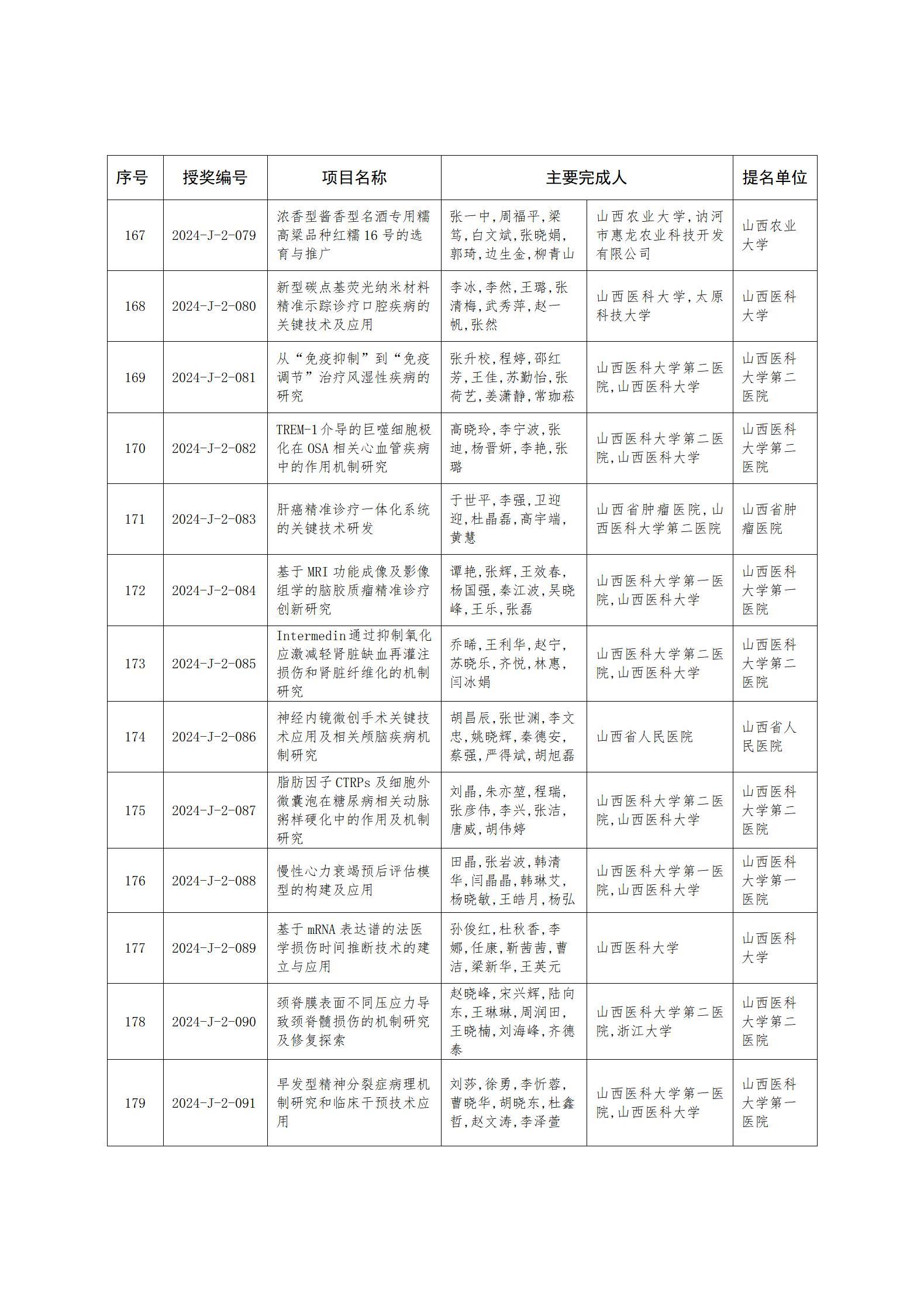 附件:2024年度山西省科学技术奖授奖项目(企业)目录