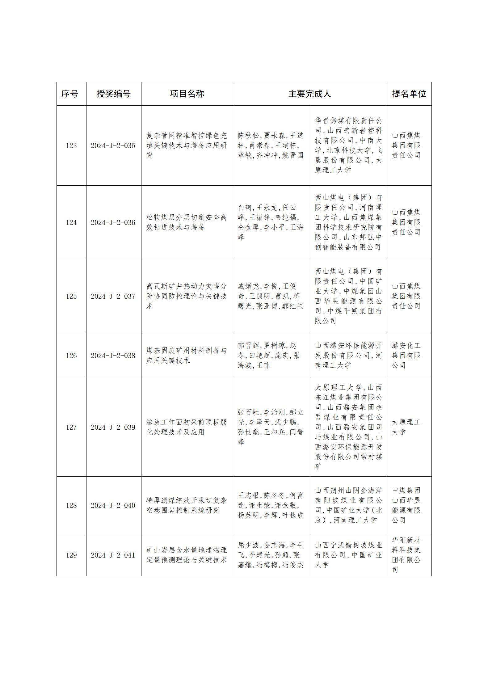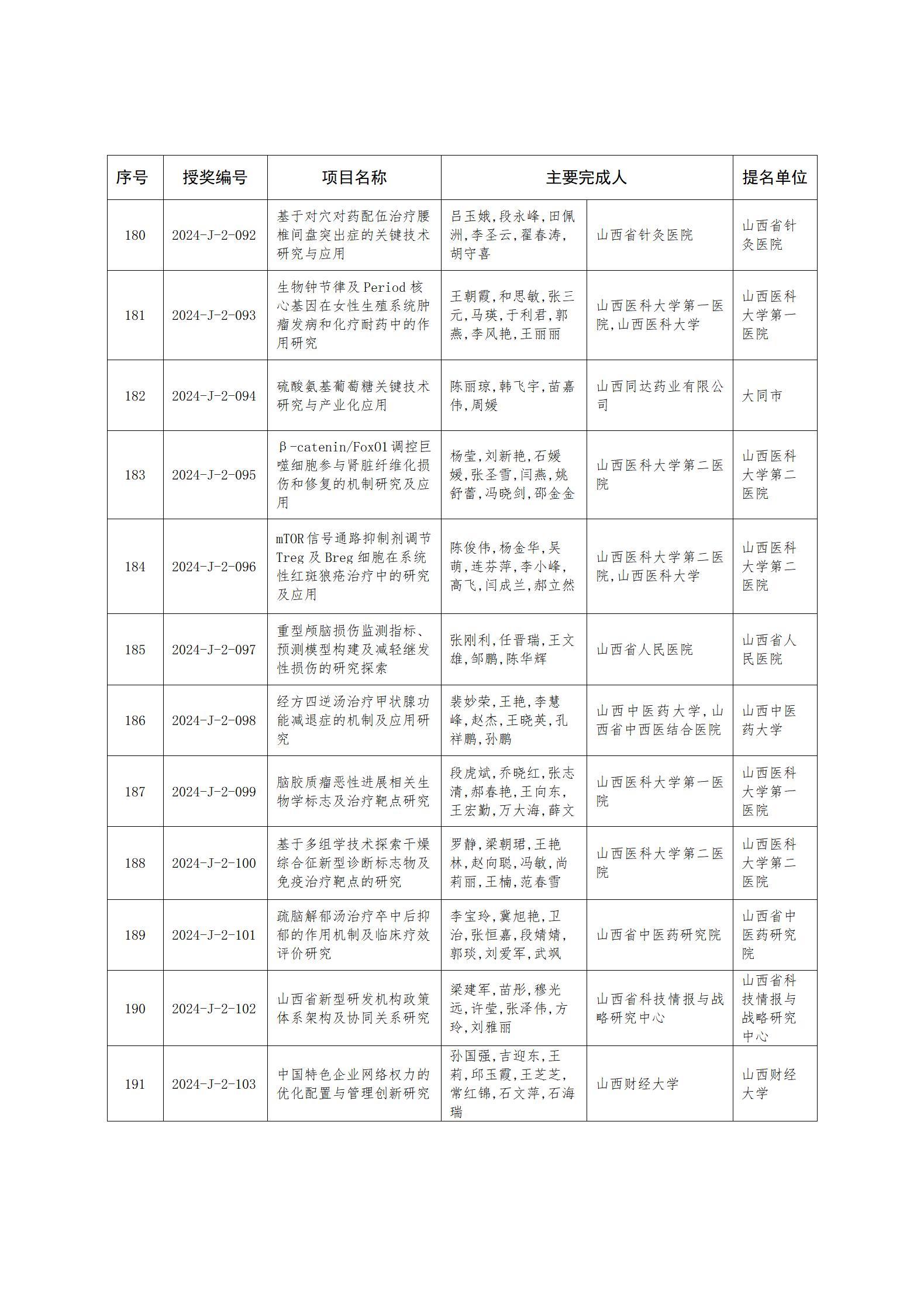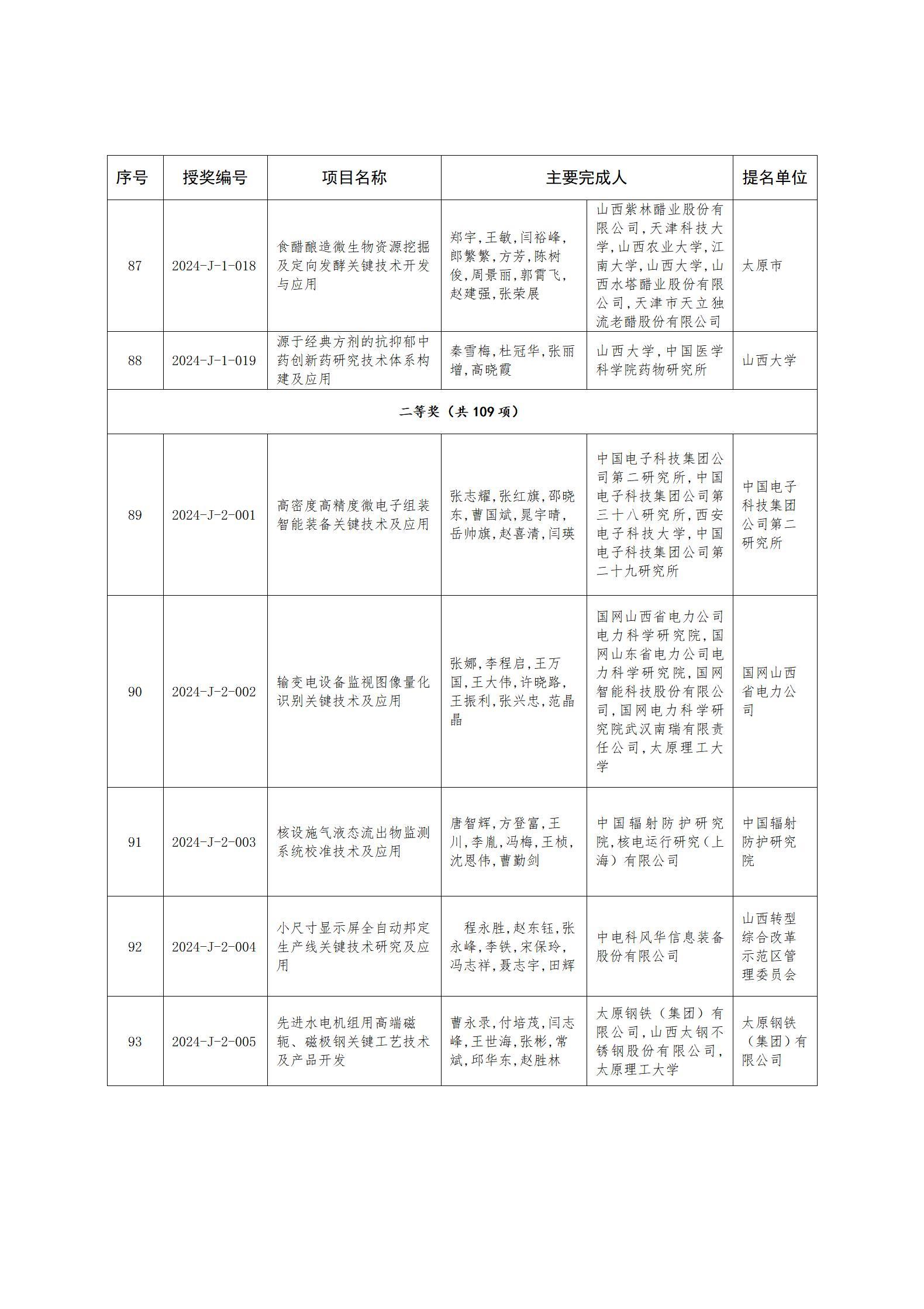 附件:2024年度山西省科学技术奖授奖项目(企业)目录