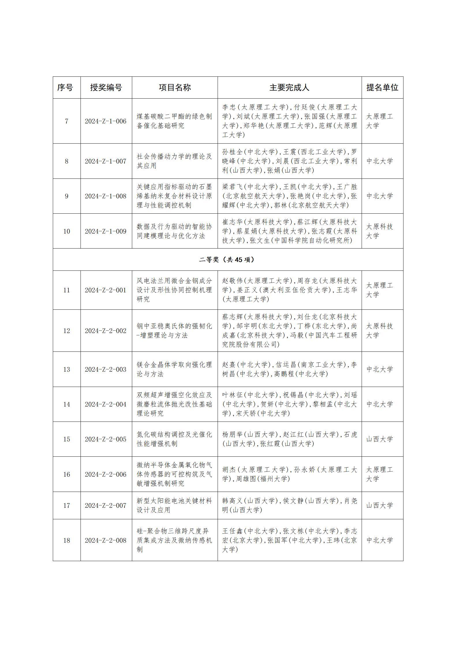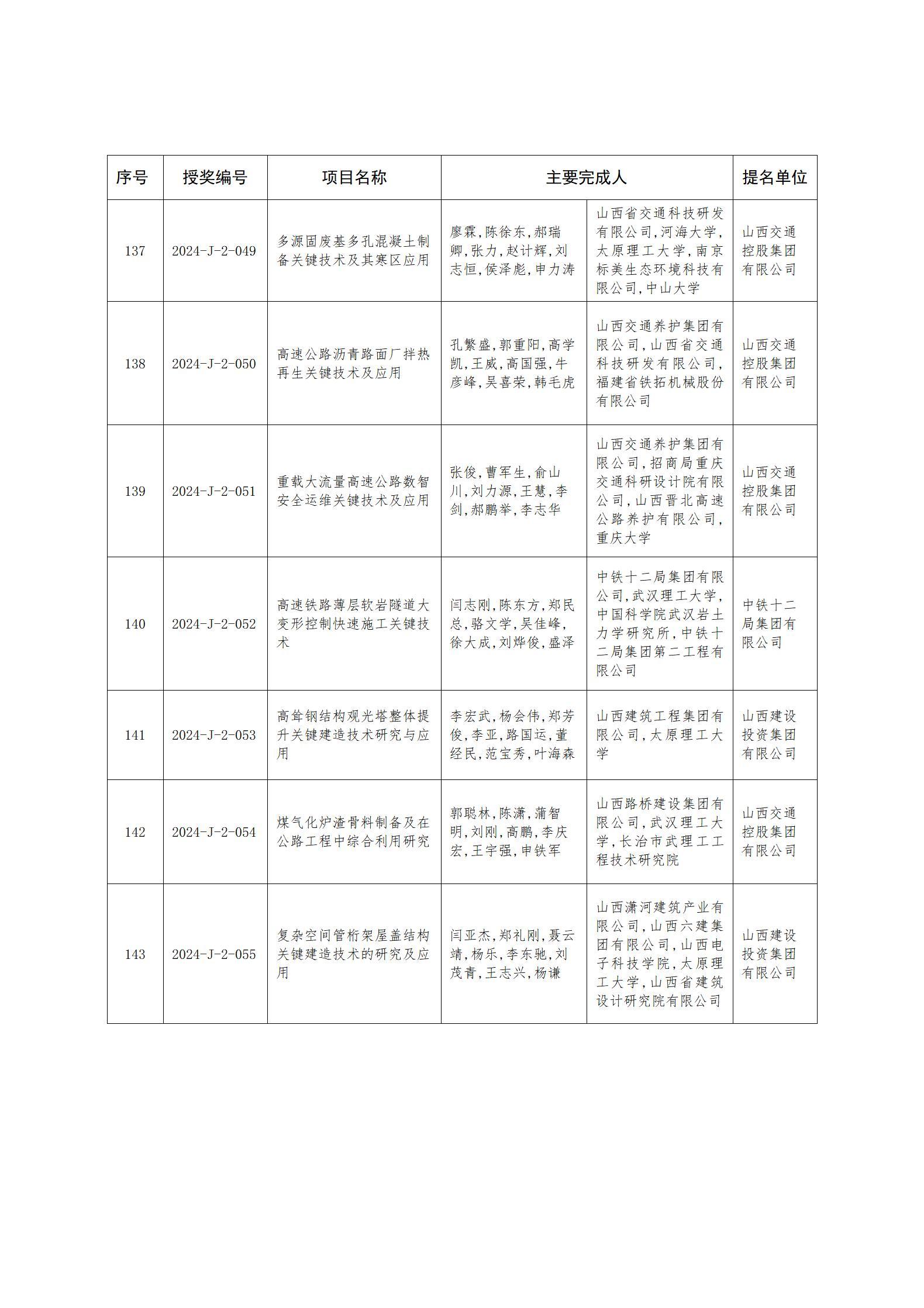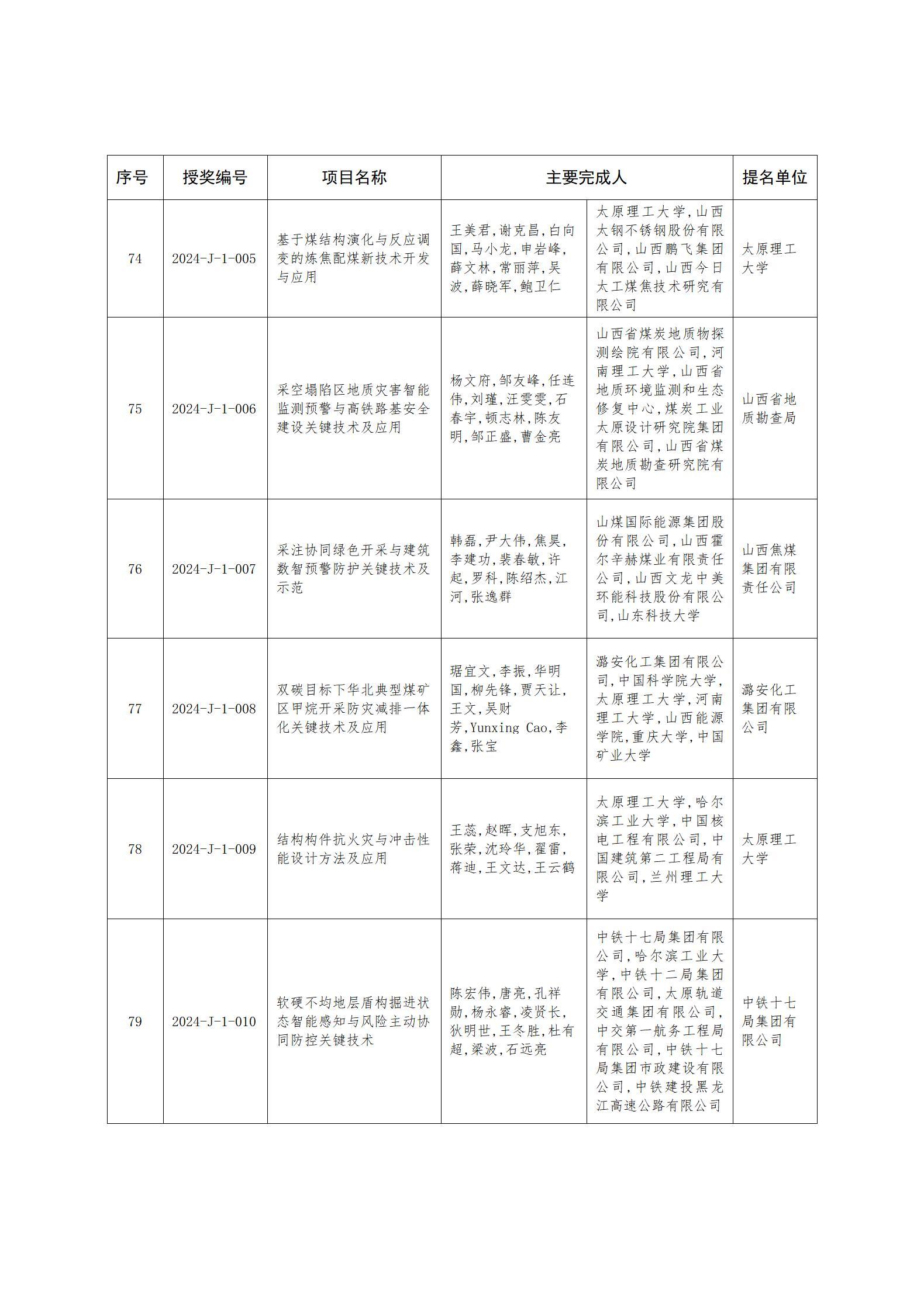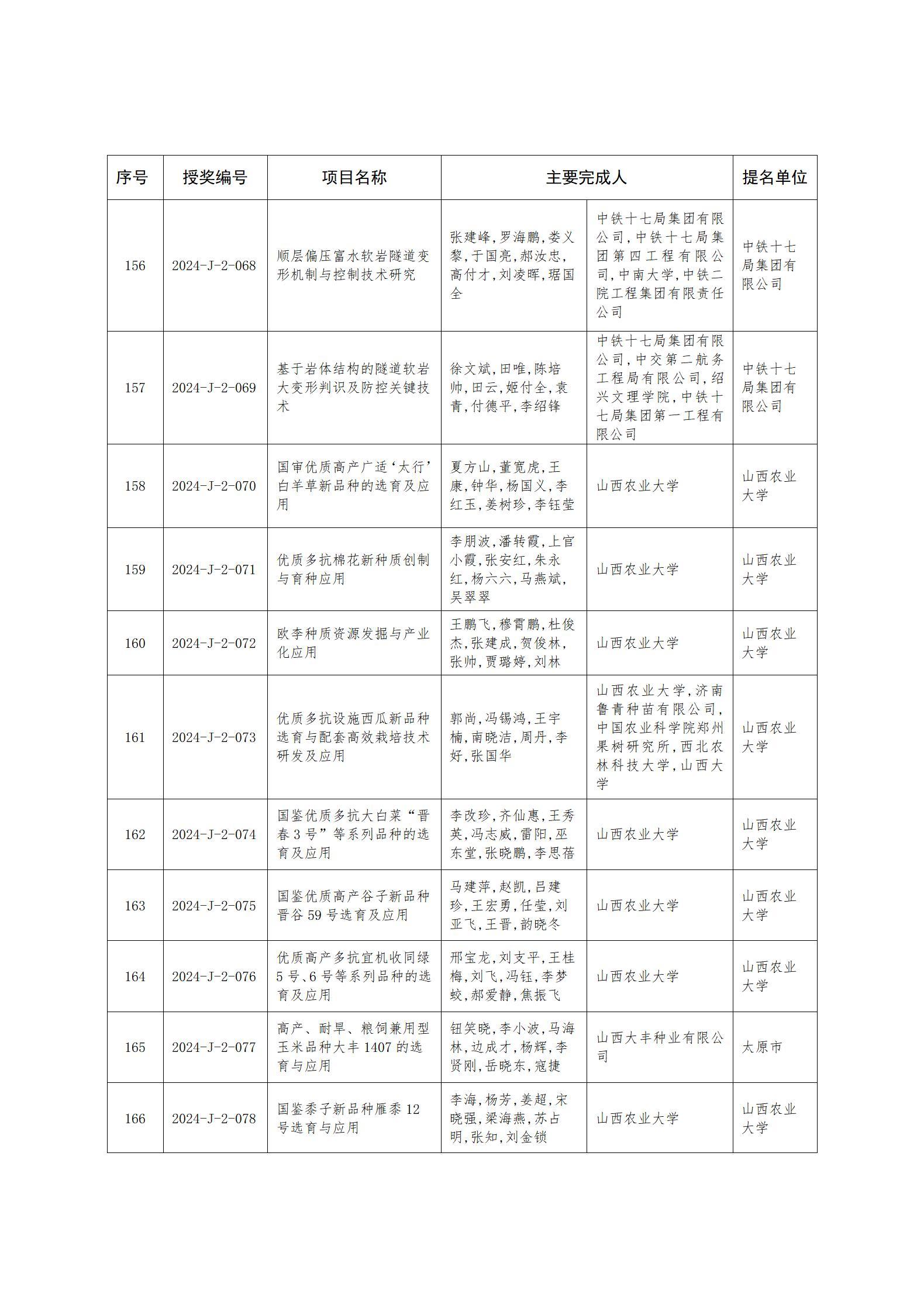 附件:2024年度山西省科学技术奖授奖项目(企业)目录