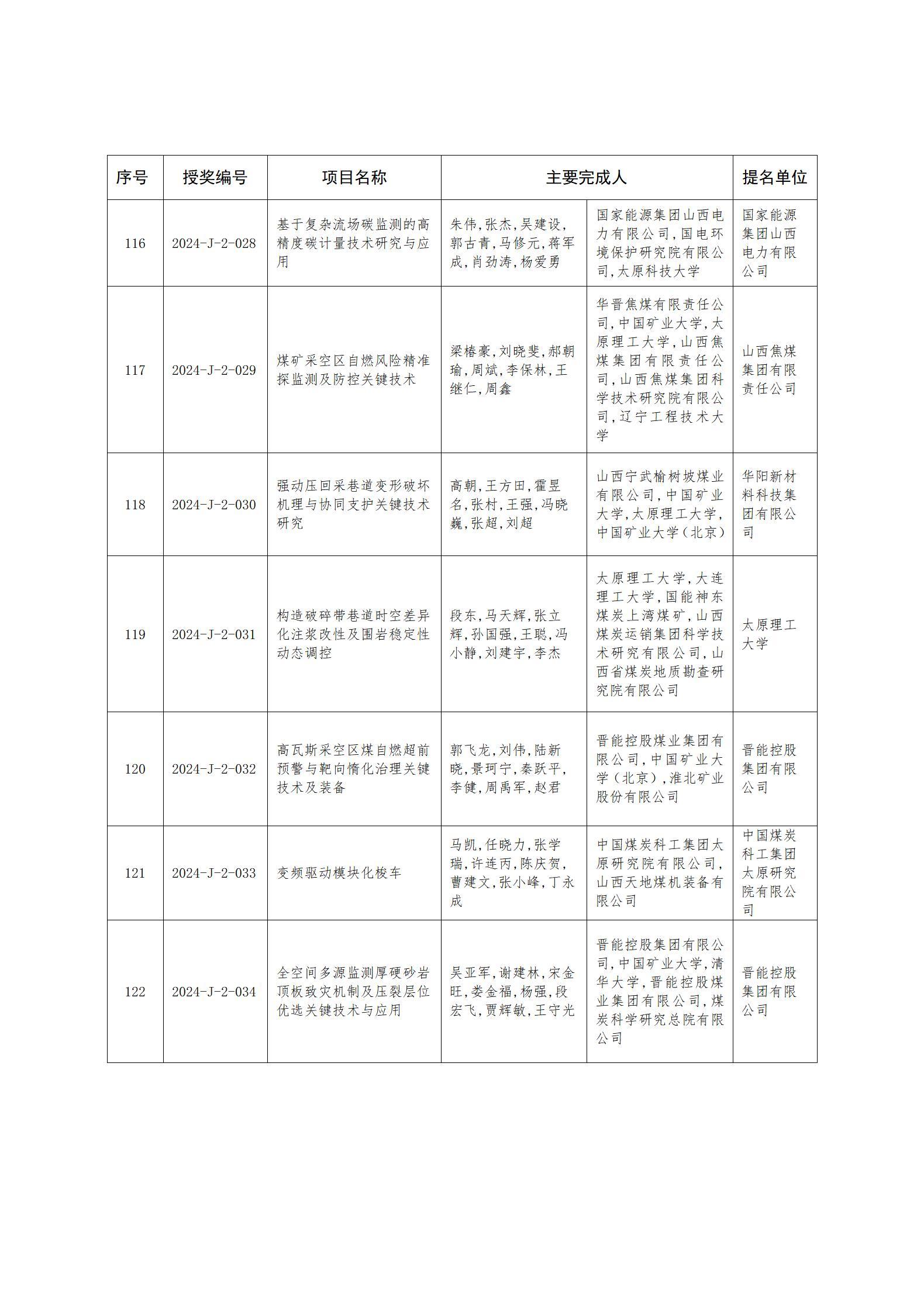 根据《山西省科学技术奖励办法》等有关规定,经省科学技术奖励评审委员会评审、省委科技委员会审定,授予“遗煤开采承载结构失稳致灾机理及关键域充填储碳空间重构方法”和“极低磁导率高抛光性高耐蚀不锈钢开发与应用”2个项目特等奖,授予“异形半导体晶片微米级视觉智能检测技术开发及应用”等36个项目一等奖,授予“高密度高精度微电子组装智能装备关键技术及应用”等161个项目二等奖,授予“晋能控股装备制造集团有限公司”等6个企业技术创新奖。