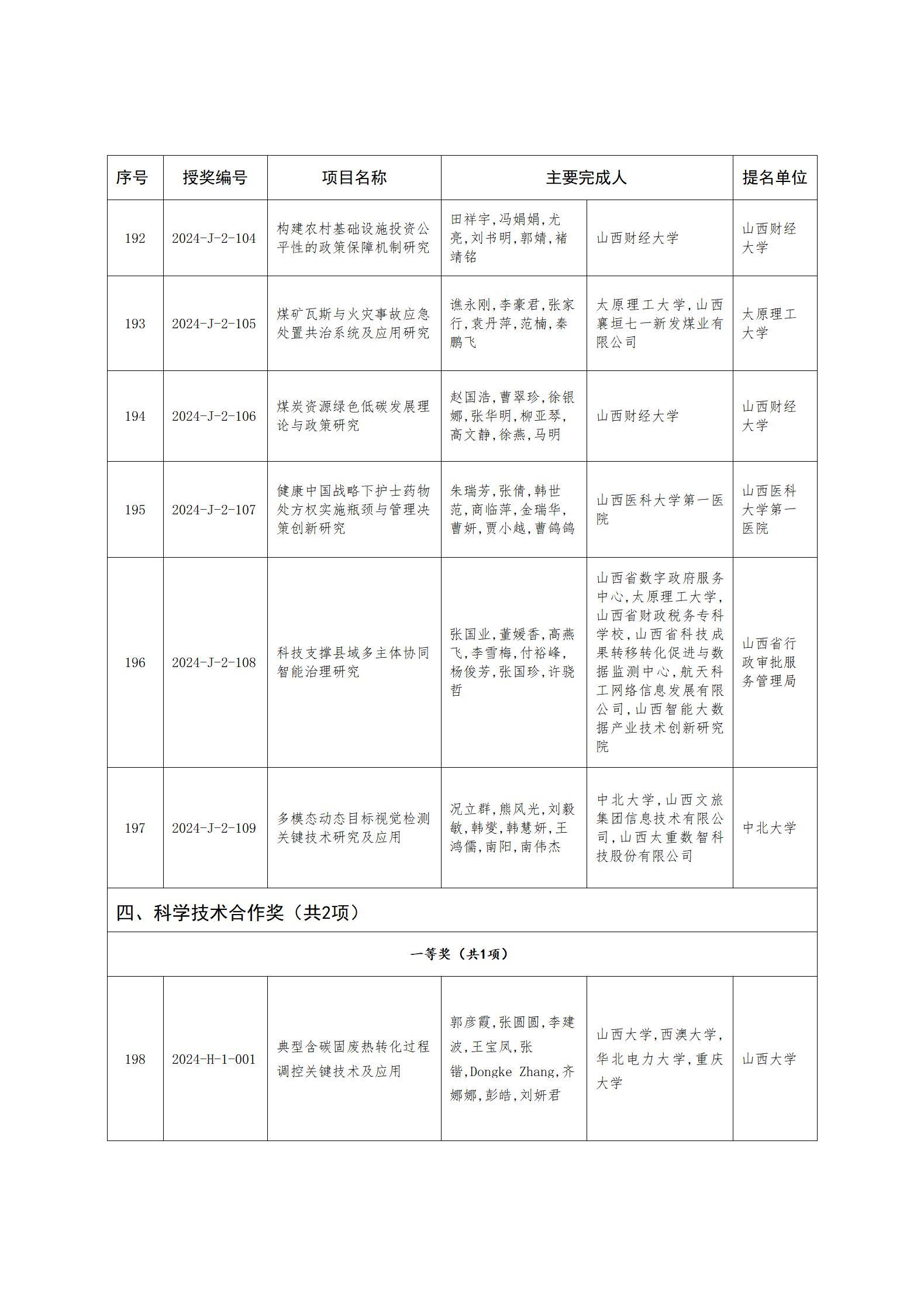 山西省人民政府关于2024年度山西省科学技术奖励的决定