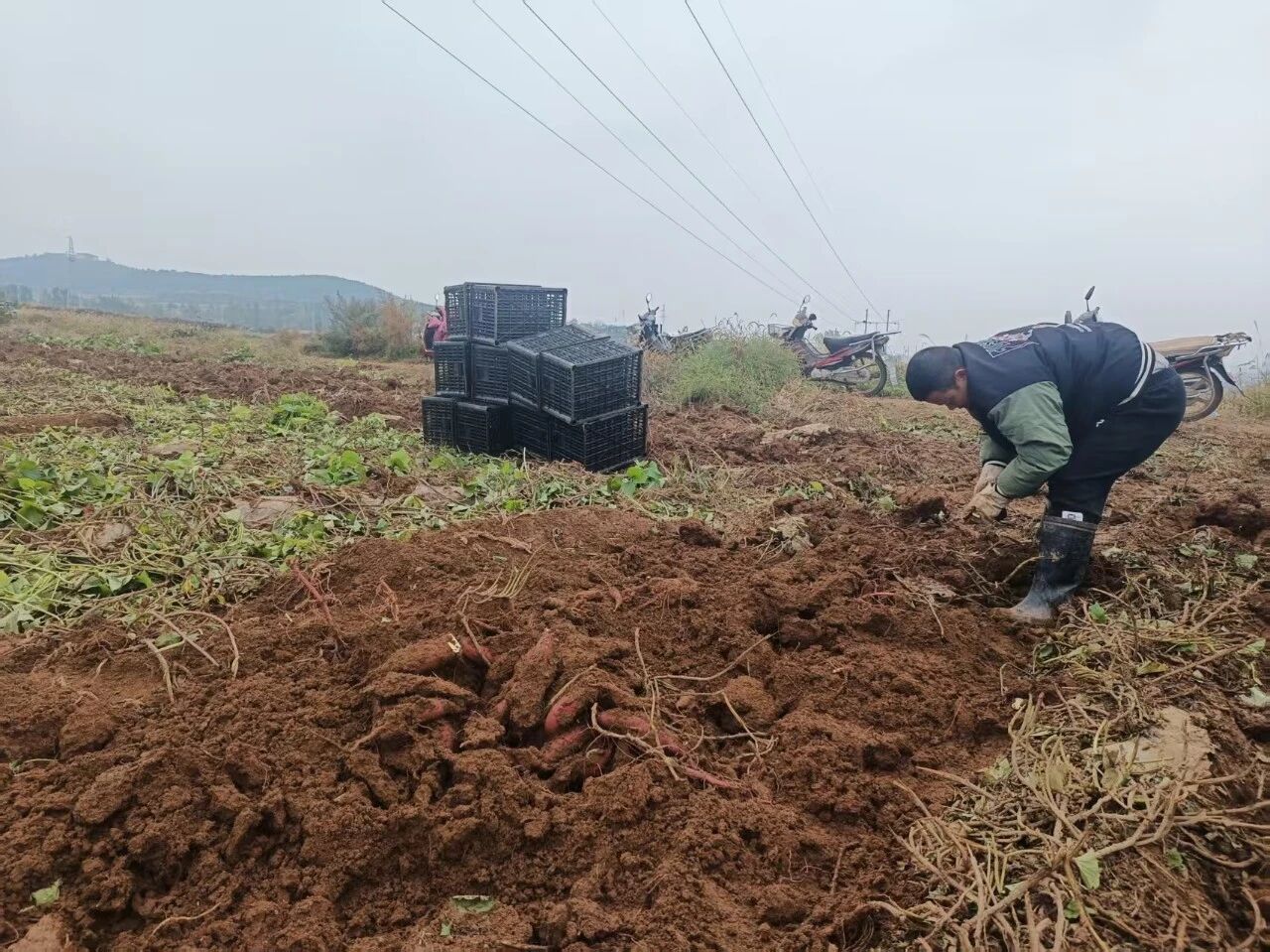 连续的降雨天气,给红薯采收工作带来不小挑战。近日,趁天气好转,河西镇丁壁村迅速组织人员和机械,抢抓农时采收红薯,确保红薯应收尽收、颗粒归仓。