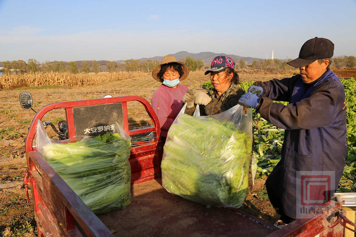 时值初冬,寺庄镇伯方村北方清园农业专业合作社种植的白菜迎来丰收。村民们趁着晴好天气,忙着采收,运往市区商超。