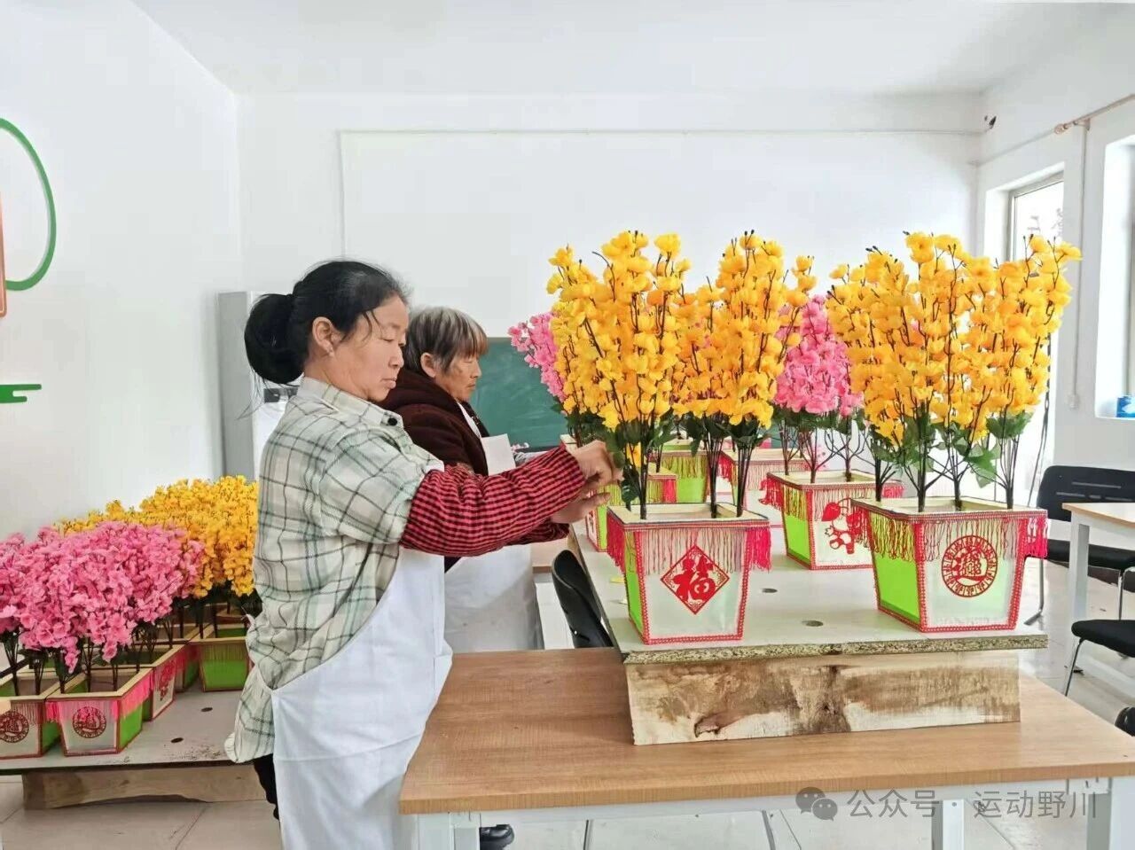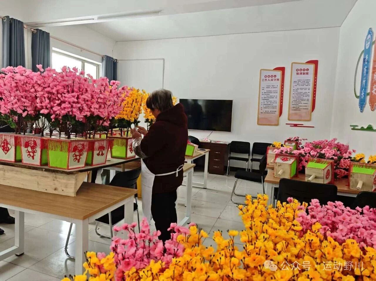 “这些灯是元宵耍乐的‘脸面’,每一步都得仔细。”正在固定花枝的杨顺兰笑着说,“等把这些花枝和剪纸都布置好,接下来还要给灯架内部铺设灯带,再在灯箱外壁写上应景的文字,让每一盏灯都更有意义。”她手里的花枝随着动作轻轻颤动,明黄的花朵在彩纸灯箱的映衬下格外鲜亮。