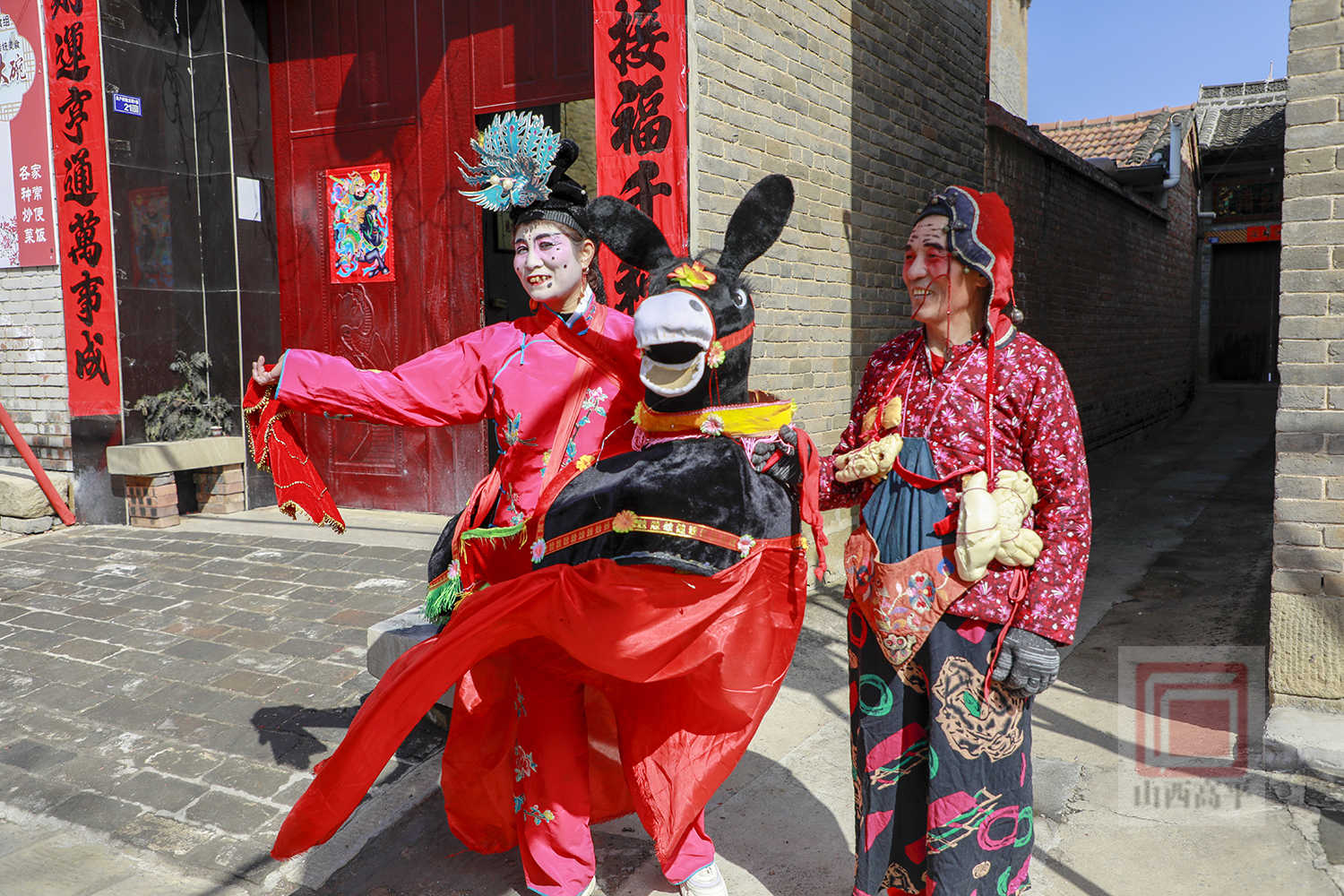 街道士巡游是良户古村历史悠久、传承完整的民俗活动之一,每年正月十七如期上演。相传旧时高平县有位姓毛的县令,曾在县里举办神婆大赛出了丑。于是每年正月十七,村民们便扮演毛县令及其家眷,在村落主要街道巡游,边走边讲笑话,与民同乐,以此讽刺官场丑态,也增添了节日的欢乐气氛。这一独特的闹社火形式代代相传,成为太行古村最具辨识度的年俗符号。(李金莎 邢宇琛)