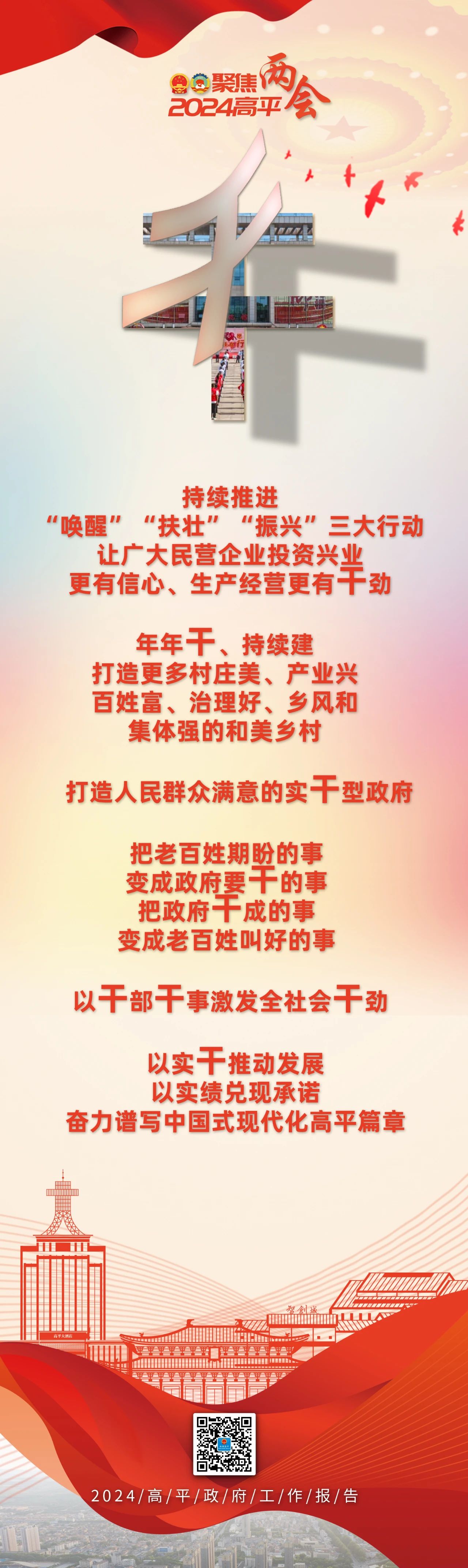 8个关键字,带你了解高平2024年重点工作 来源:高平市大数据中心 发布时间:2024-03-03 【字体:小 大】 如果内容不能正常显示,请更换浏览器进行重试 3月2日上午市七届人大六次会议开幕徐浩市长作政府工作报告8个关键字带你了解高平2024年重点工作 本页二维码 【打印正文】