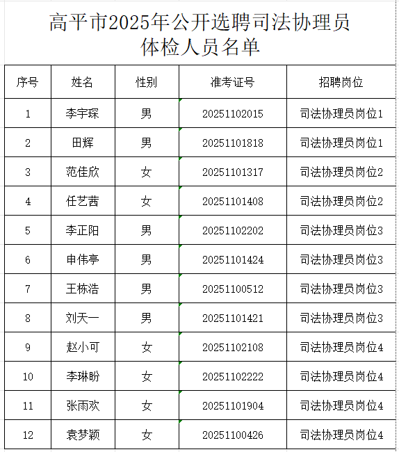 根据《高平市2025年公开选聘司法协理员公告》规定,现将高平市2025年公开选聘司法协理员体检考察有关事项通知如下: