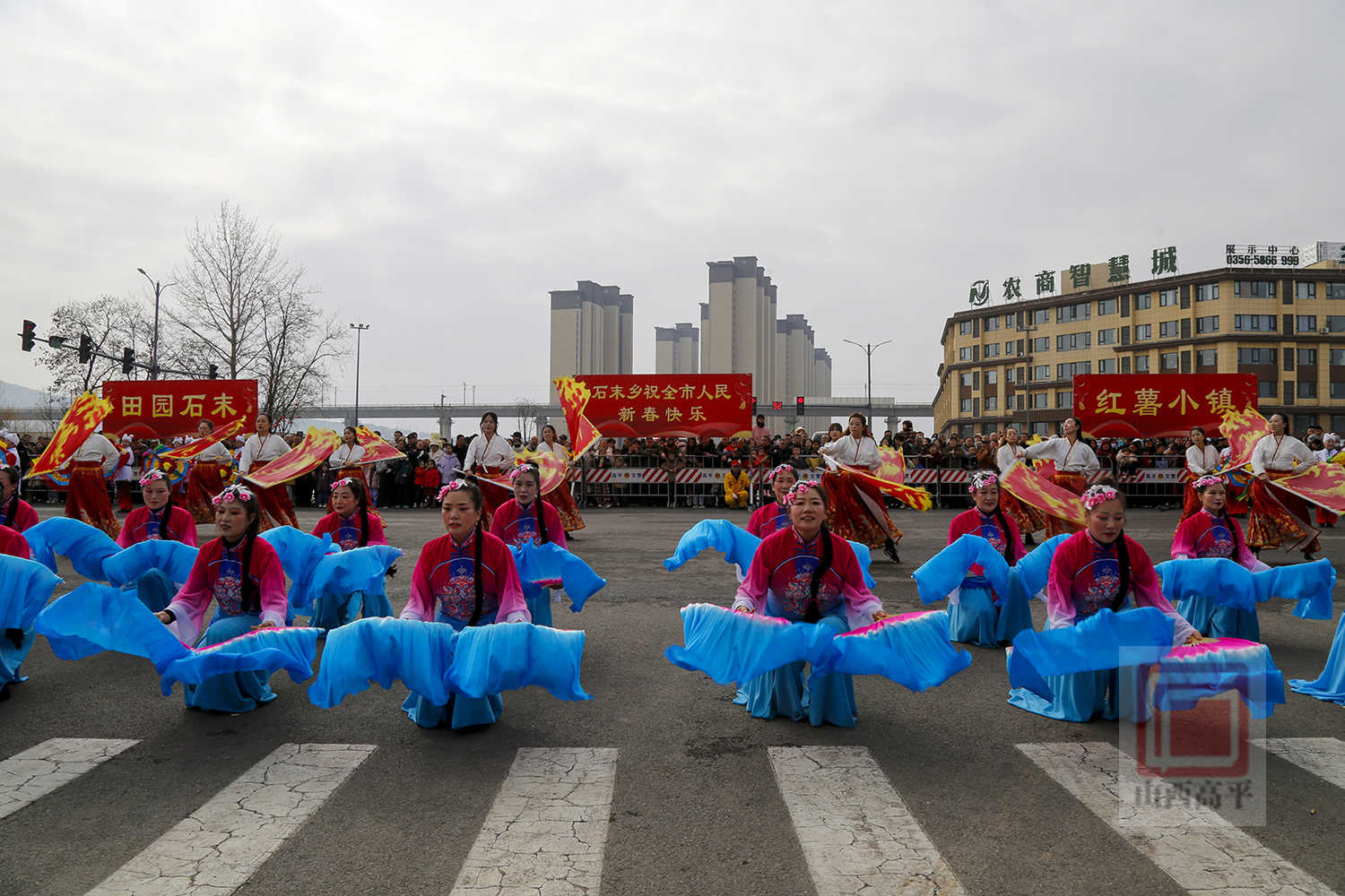 在高铁新区站前南街,锣鼓齐鸣,人声鼎沸。元宵节文化活动在米山镇带来的《诸天礼赞》耍乐故事中拉开帷幕。伴着黑神话主题曲《三界四洲》激昂的旋律响起,演员们身着二十四诸天彩塑华服惊艳登场,锣鼓、舞龙穿插其间,尽显喜庆欢腾。马村镇上演的《龙马威狮鼓韵马村》耍乐故事,通过“非遗+科技”融合,让跑竹马、舞狮表演更显科技范。紧接着,鼓舞、扇舞、扛桩、腰鼓等耍乐故事接连上演,或喜庆热烈,或逗趣诙谐的表演,引得围观群众连连叫好。